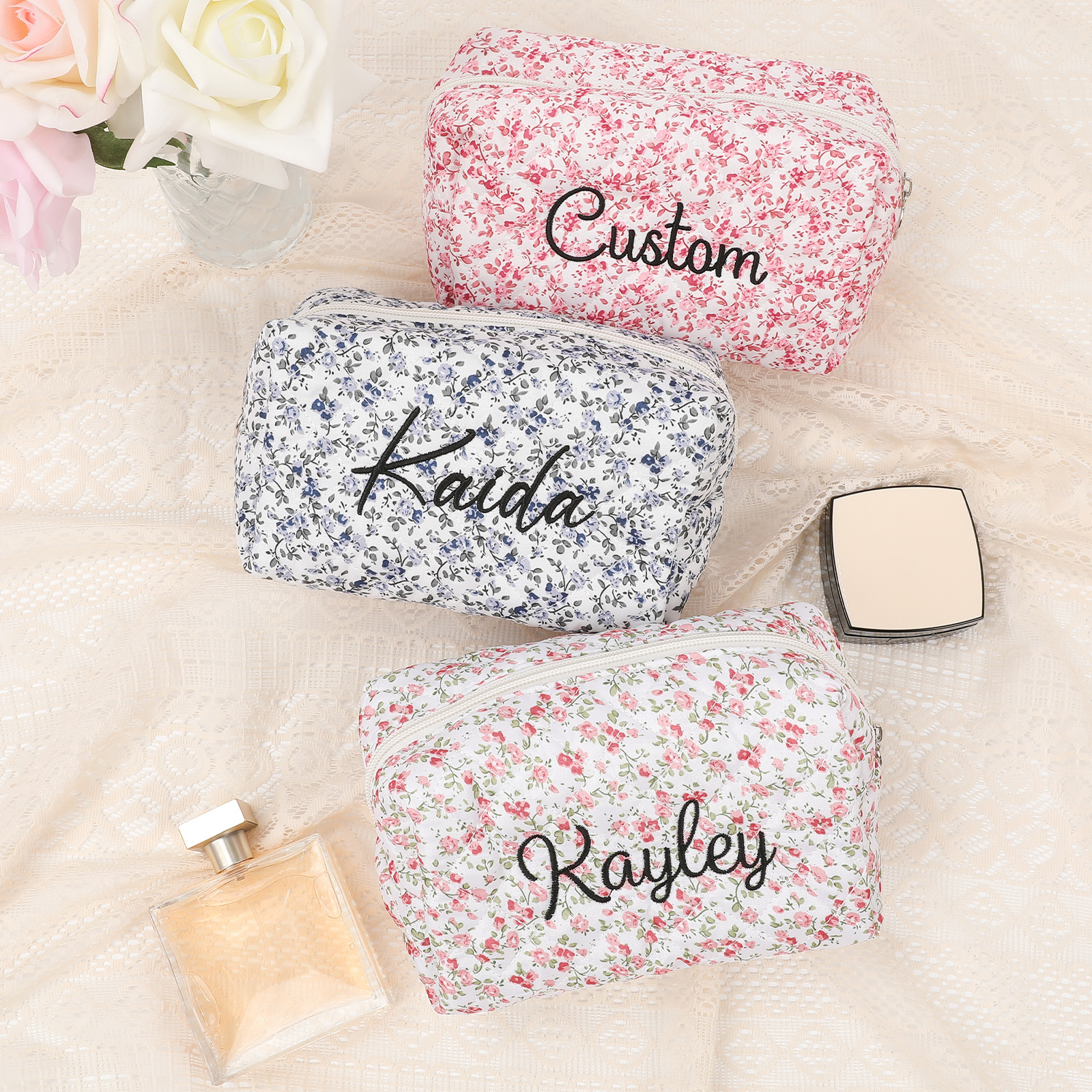 Etsy 개인화 된 자수 스타일 뜨거운 판매 화장품 가방 새로운 대용량 화장품 가방 높은 색상 휴대용 여행 가방