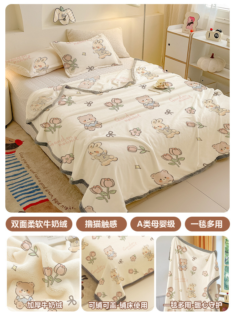 • 꽃곰 [양면 밀크 벨벳, 정전기 방지 및 쉽게 흘리지 않음]