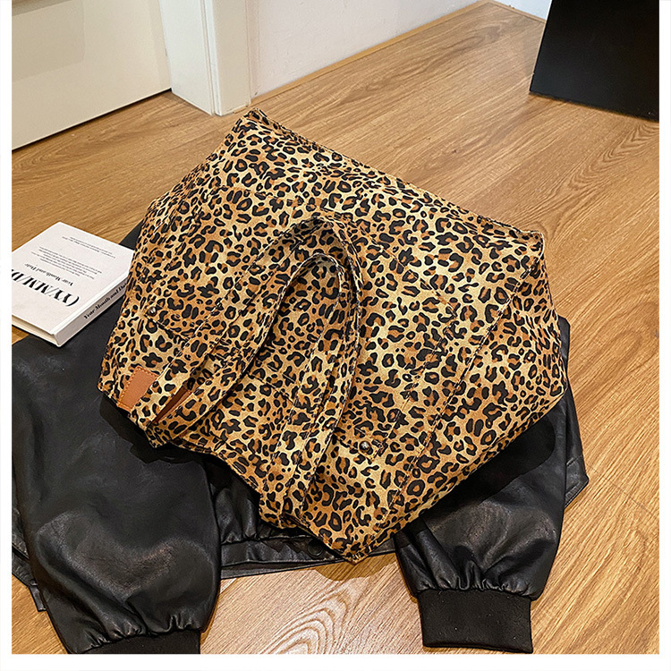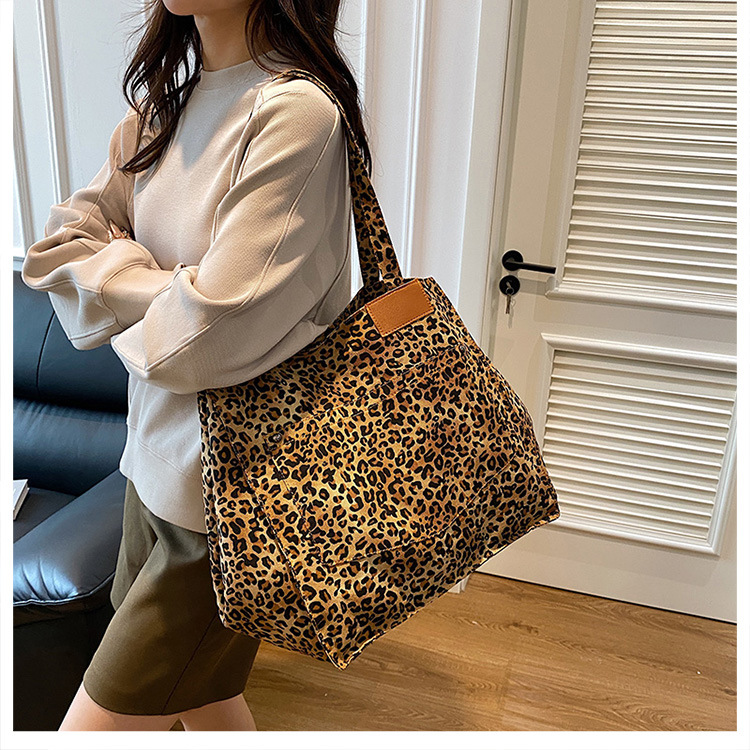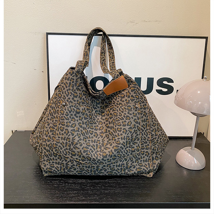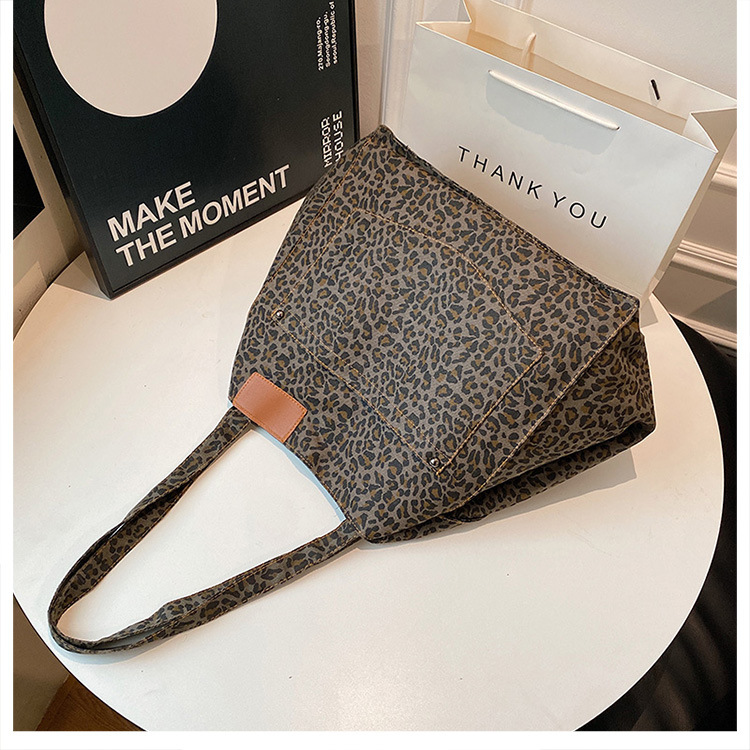 올해는 정말 핫해요! 셀프 리저브 레오파드 프린트 캔버스 숄더백 한국 블로거의 같은 스타일 레이지 스타일 대용량 핸드백