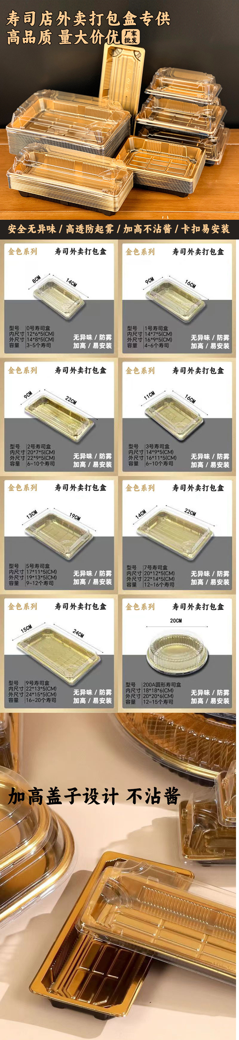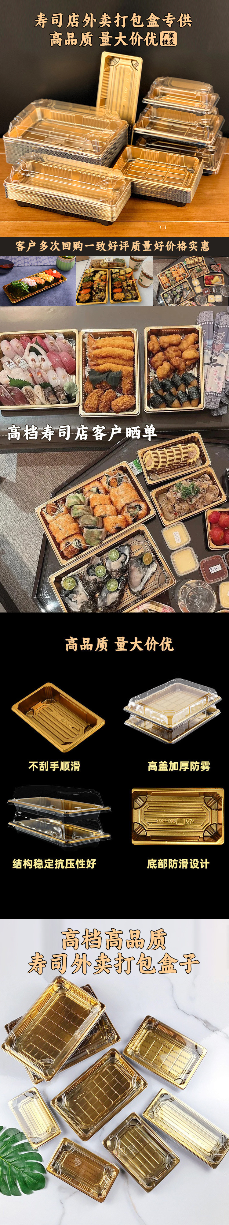 [1421명이 호평] 톨보이 골드 직사각형 포장 골드 박스 일회용 일본식 사시미 테이크아웃 상업용 생일