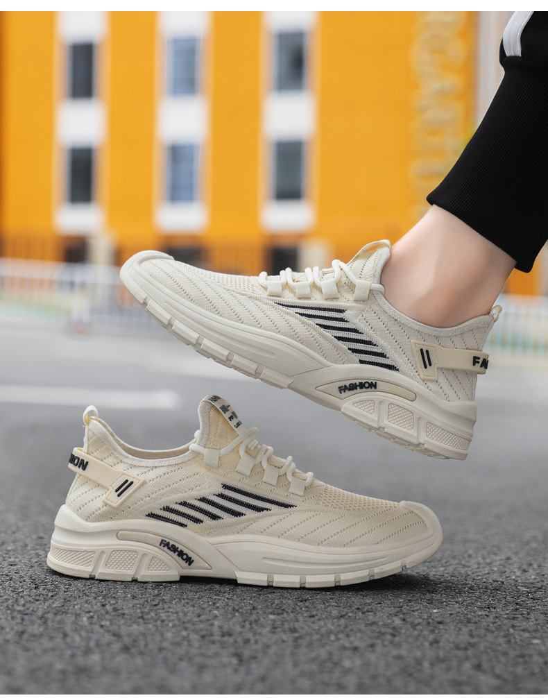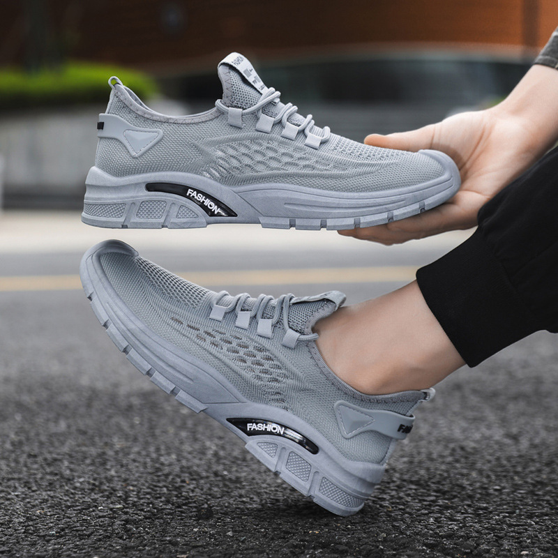 남성 신발 레이스 업 통기성 캐주얼 신발 2024 봄과 여름 부드러운 단독 플라이 짠 남성 스포츠 운동화 남성 코코넛 신발