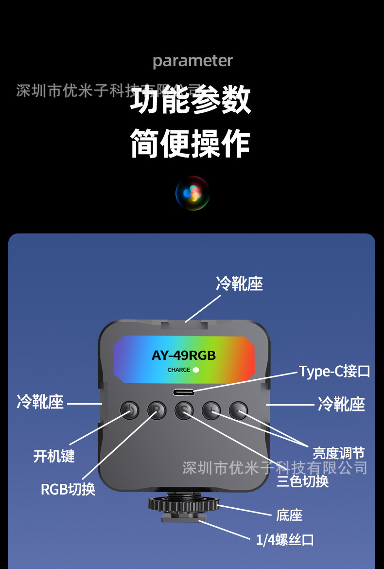 Vlog 야외 라이브 방송 필 라이트 사진 조명 휴대용 사진 분위기 조명 사각형 휴대용 포켓 라이트 led 라이트