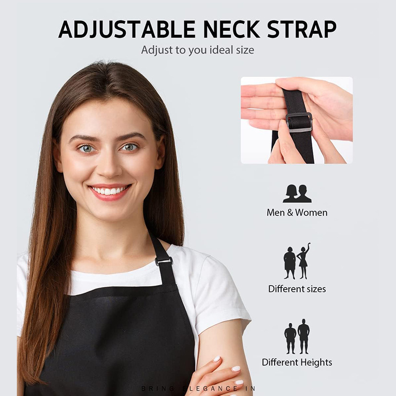 국경 간 공급 대외 무역 검은 폴리 에스터 앞치마는 로고 광고 및 판촉 커피 숍 주방 앞치마를 추가할 수 있습니다.