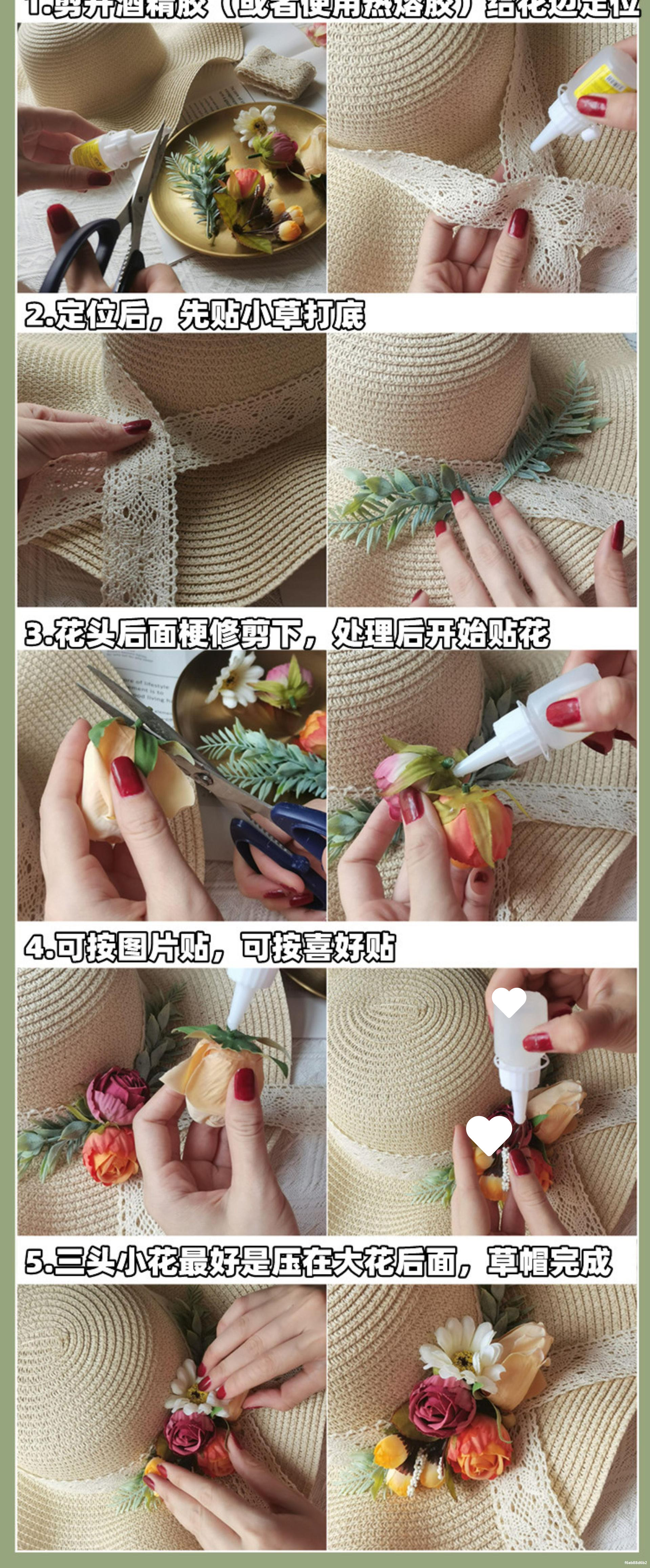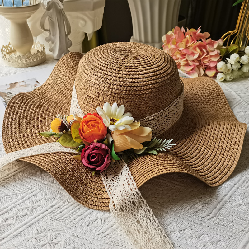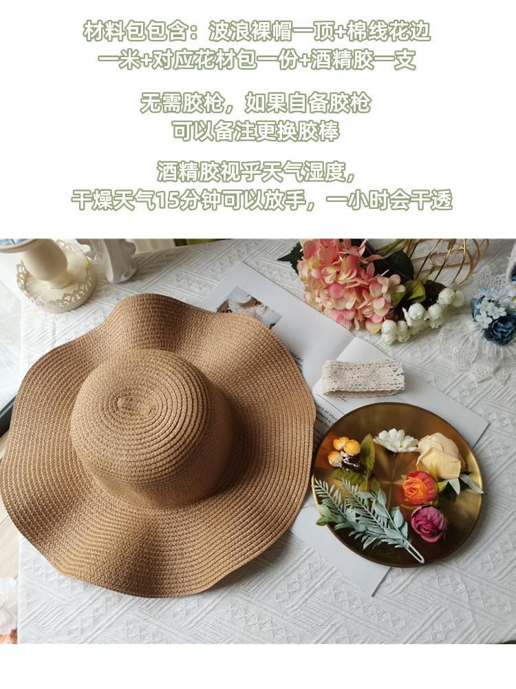 • 브라운 열대 소재 패키지 (모자 + 레이스 + 꽃 재료 + 접착제)