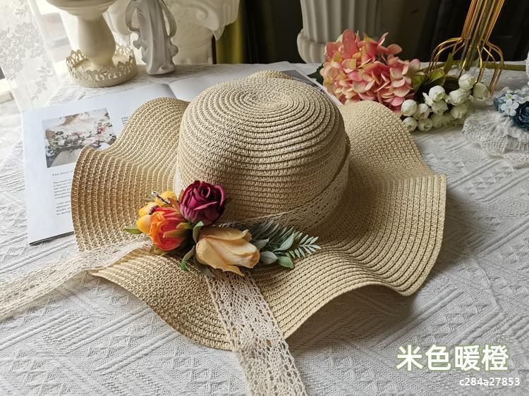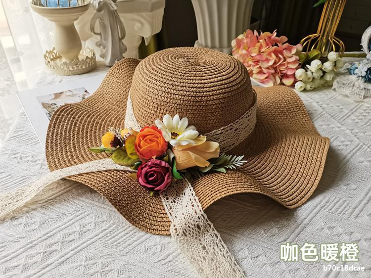 • 베이지 따뜻한 오렌지 소재 패키지 (모자+레이스+꽃+글루)