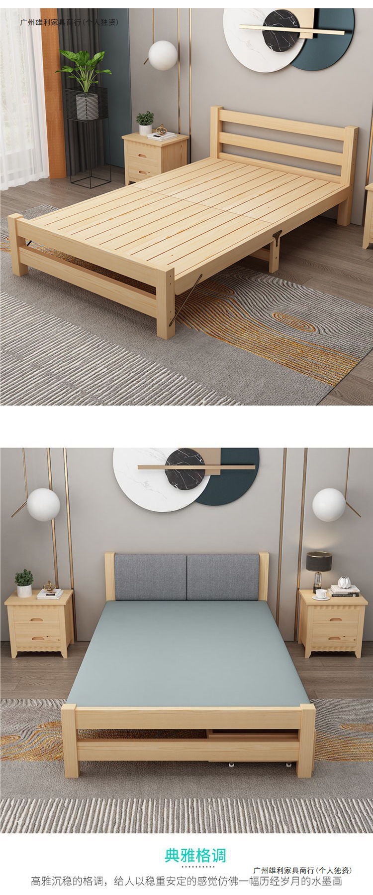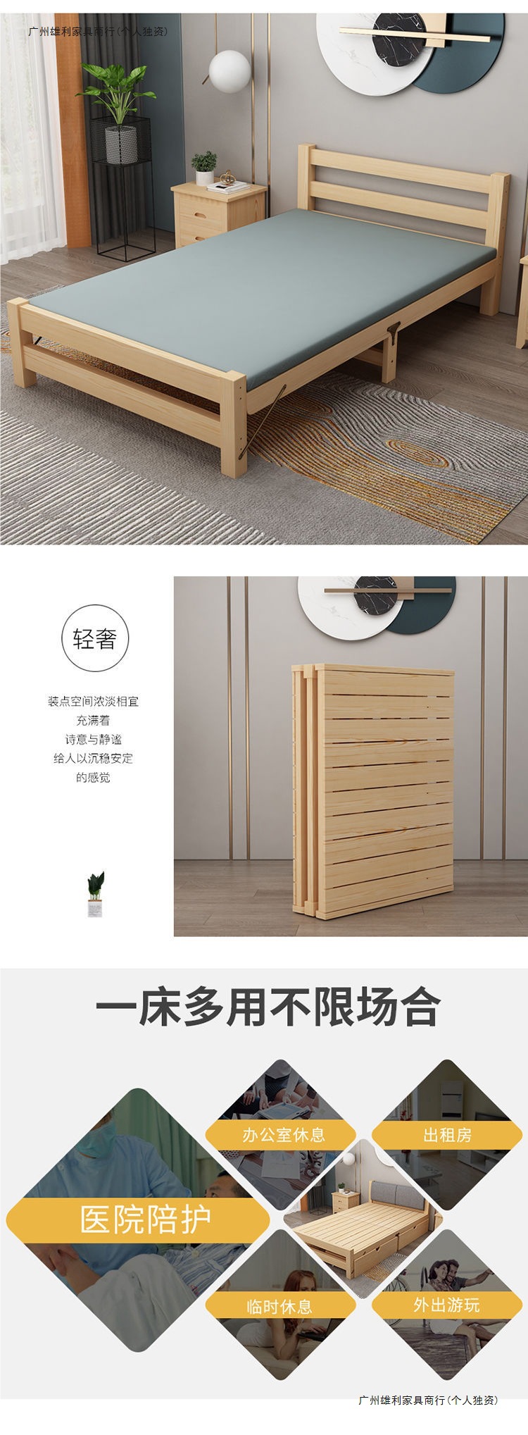 원목침대 싱글 1.2m 침대 사무실 1.5m 더블 겸용 임대실 침대 낮잠 0.8m 접이식 침대