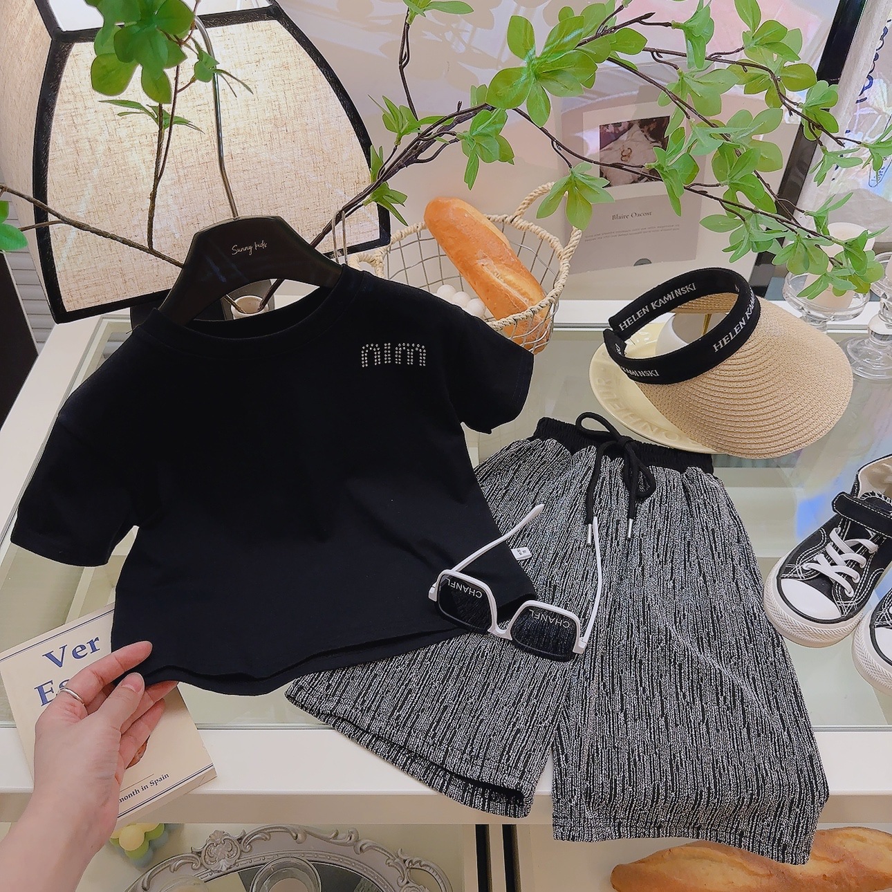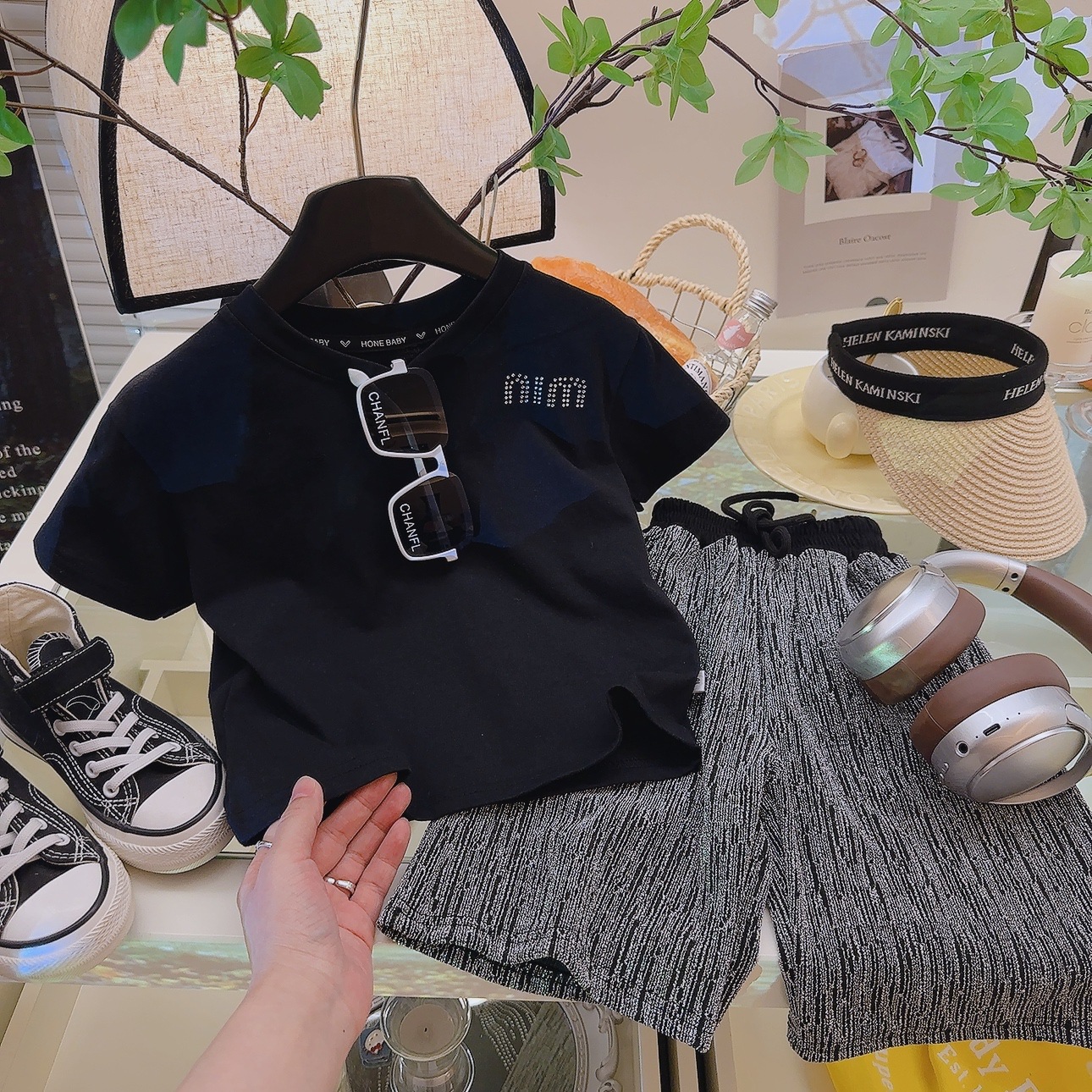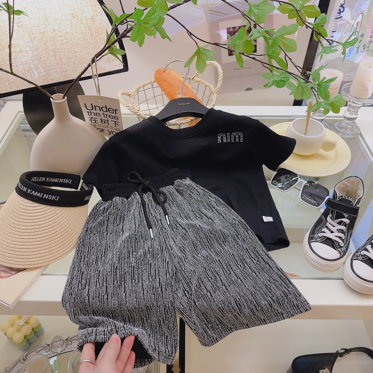 소년 여름 정장 2025 새로운 어린이 여름 정장 반짝이는 다이아몬드 날개 반팔 반바지 투피스 세트 드롭 배송스토어 가기