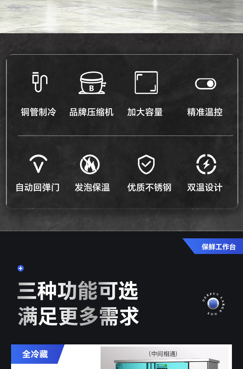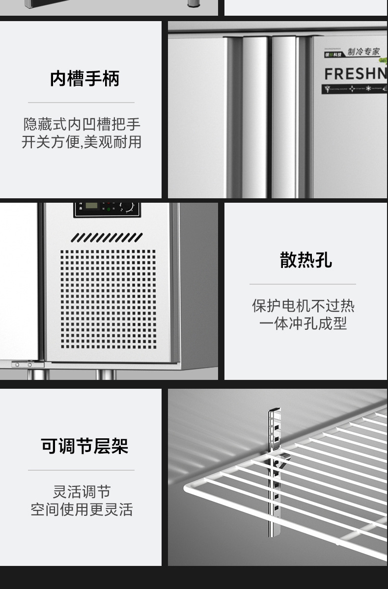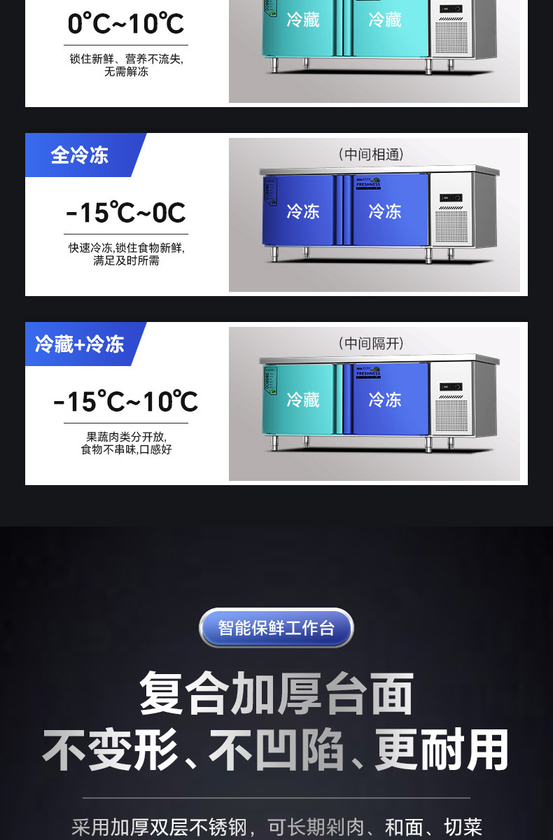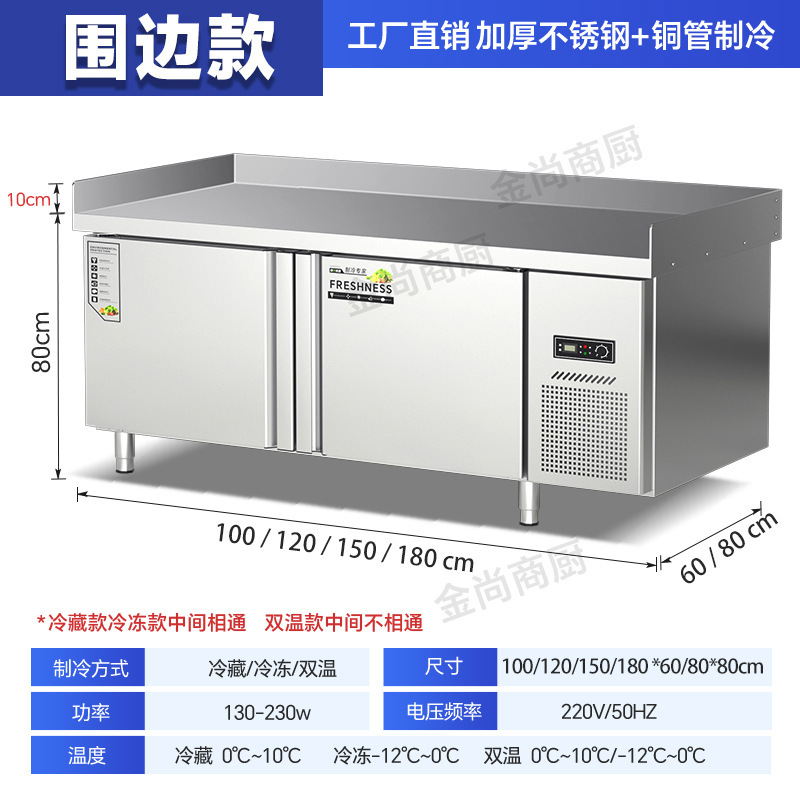작업대 냉동고 주방 라면 도마 상업용 냉장고 콜드 림 플랫 신선 유지 이중 온도 스테인레스 스틸 냉동고스토어 가기