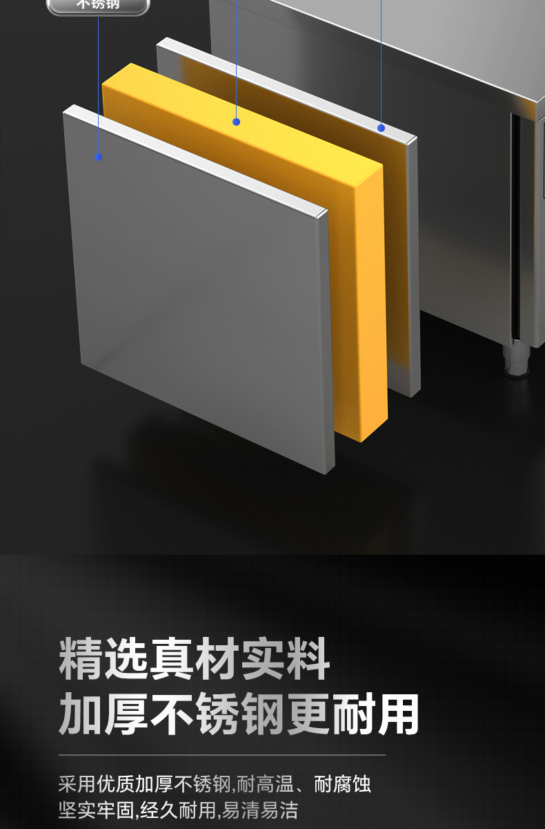 작업대 냉동고 주방 라면 도마 상업용 냉장고 콜드 림 플랫 신선 유지 이중 온도 스테인레스 스틸 냉동고