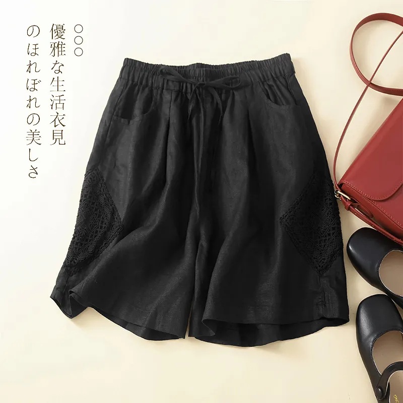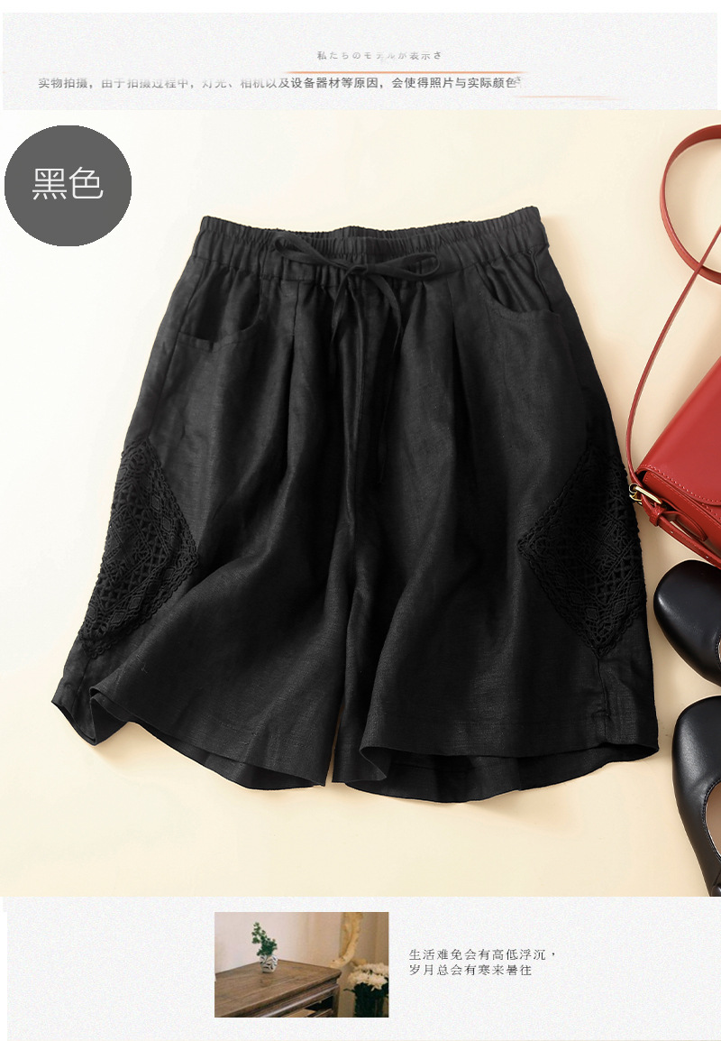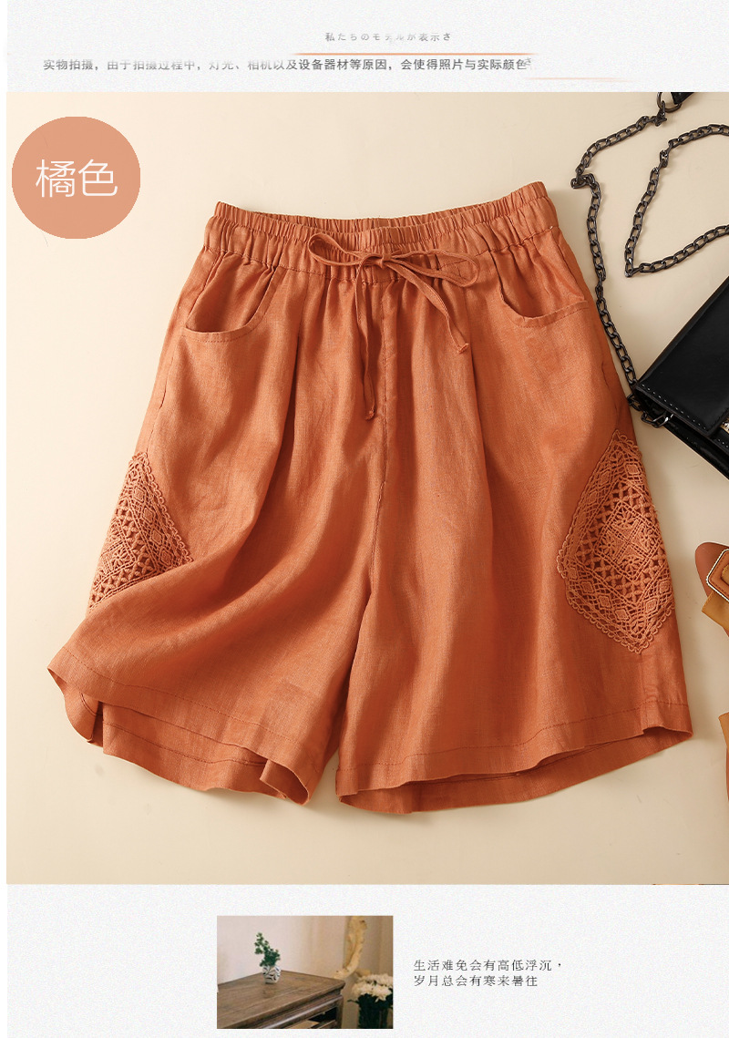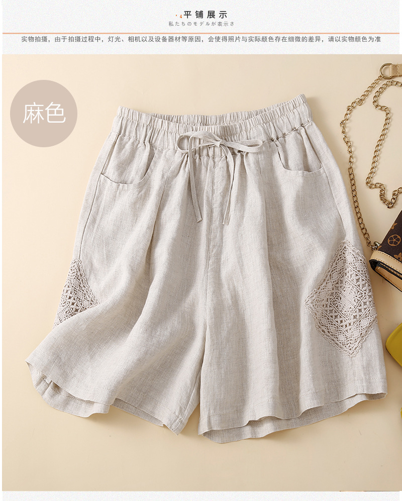 여름 신작 여성용 반바지, 예술적인 중공 면 및 린넨 바지, 시크한 레이스 스플라이싱 캐주얼 바지, 슬림한 루즈 스트레이트 팬츠스토어 가기