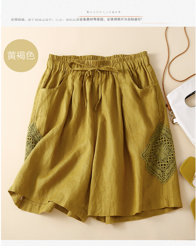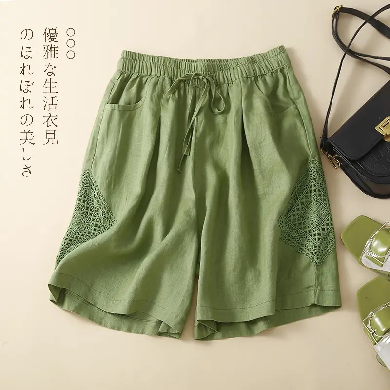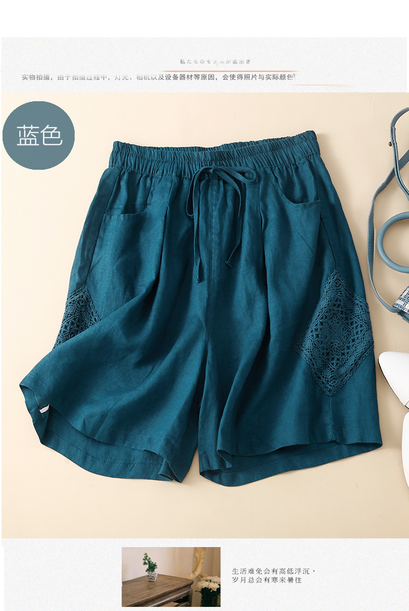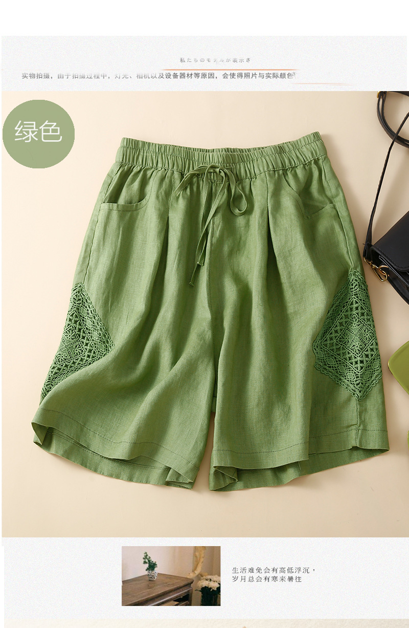 여름 신작 여성용 반바지, 예술적인 중공 면 및 린넨 바지, 시크한 레이스 스플라이싱 캐주얼 바지, 슬림한 루즈 스트레이트 팬츠스토어 가기