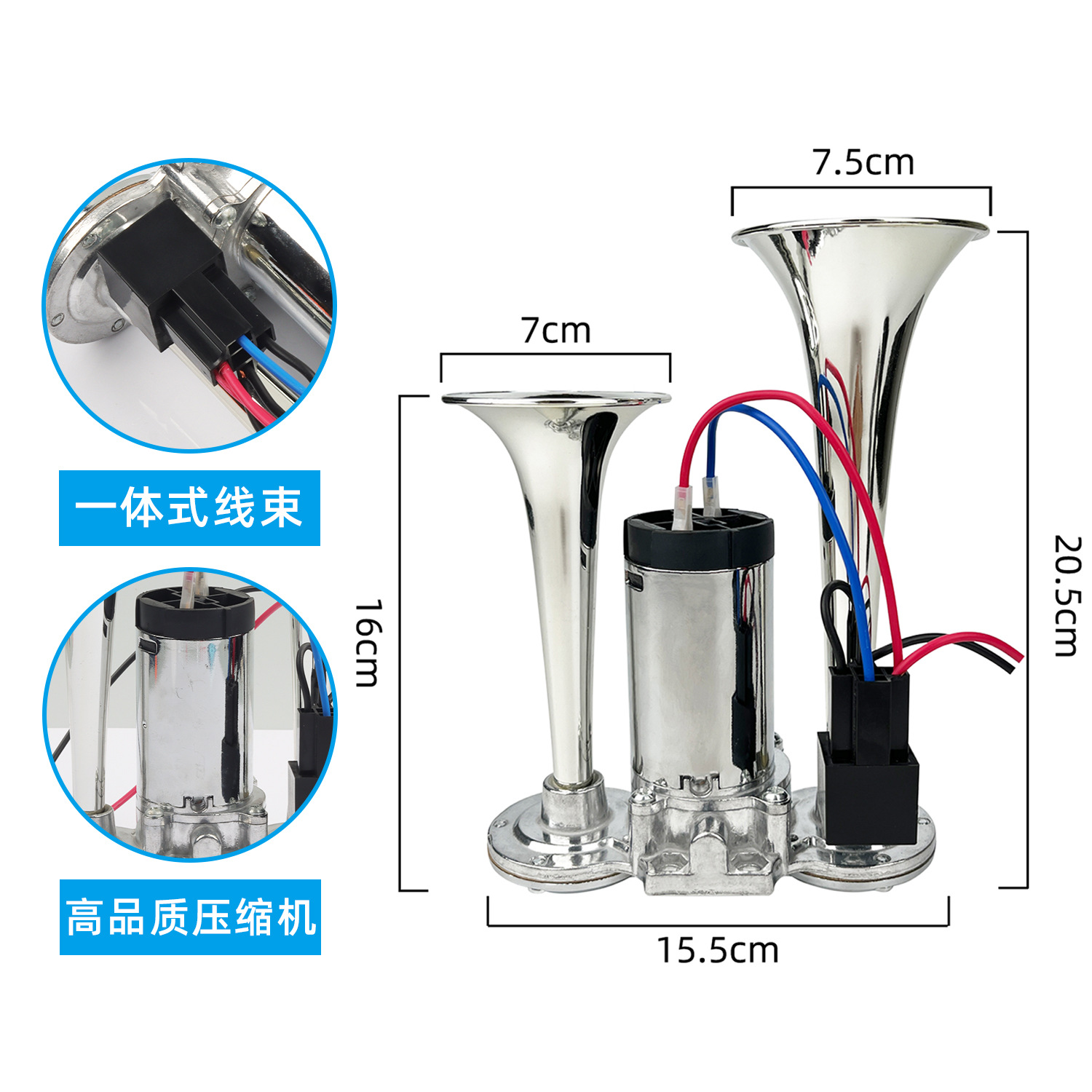 이중 튜브 통합 공기 펌프 에어 혼 자동차 수정 자동차 12V24V 트위터 크로스 보더 트렌드 개성
