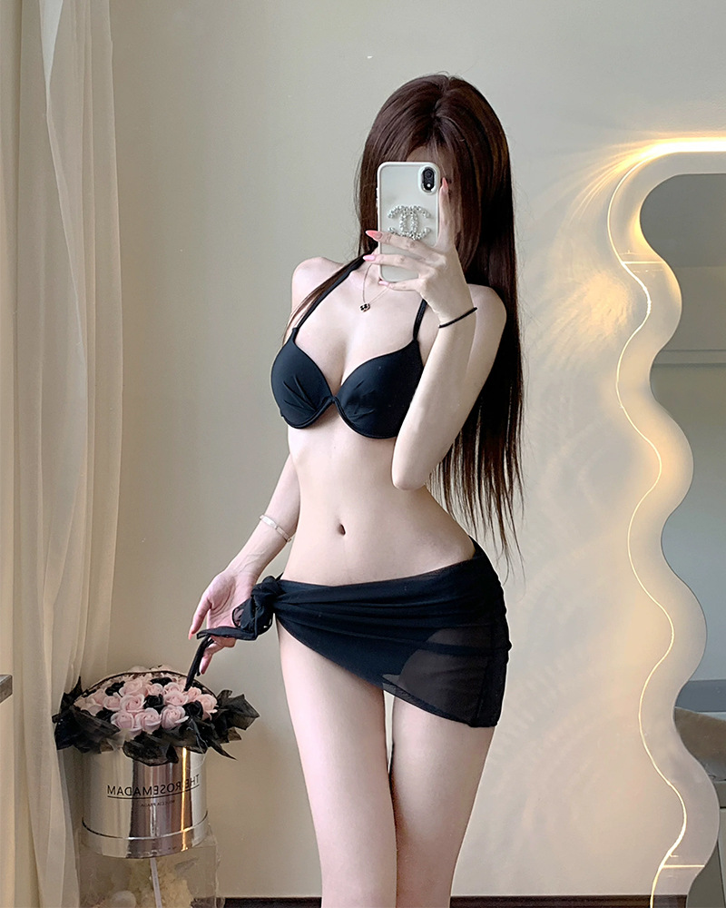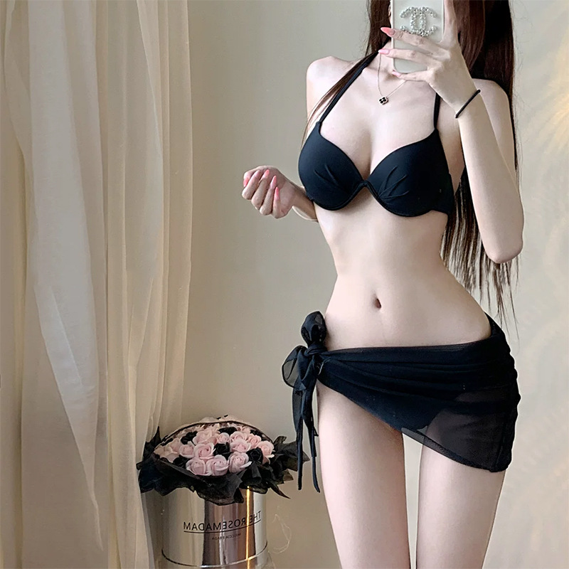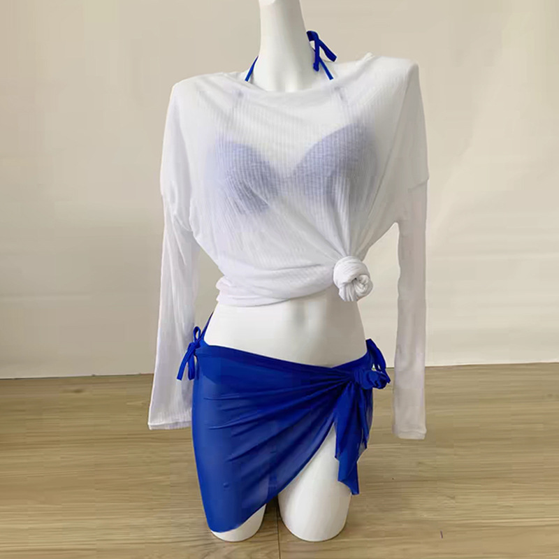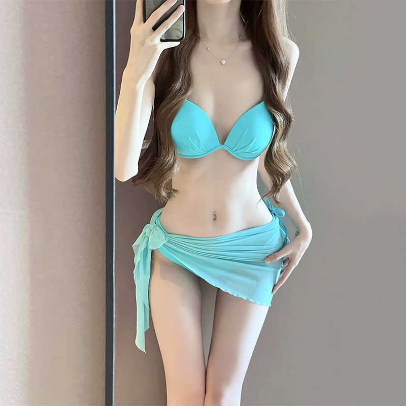 비키니 수영복 여성 스플릿 3 피스 단색 섹시 화이트 스틸 지원 해변 온천 수영복 도매 수집스토어 가기