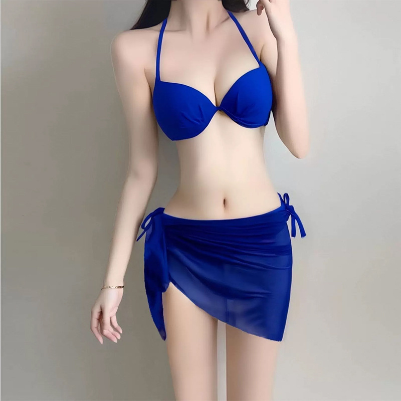 비키니 수영복 여성 스플릿 3 피스 단색 섹시 화이트 스틸 지원 해변 온천 수영복 도매 수집