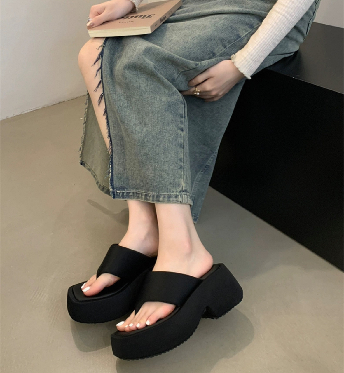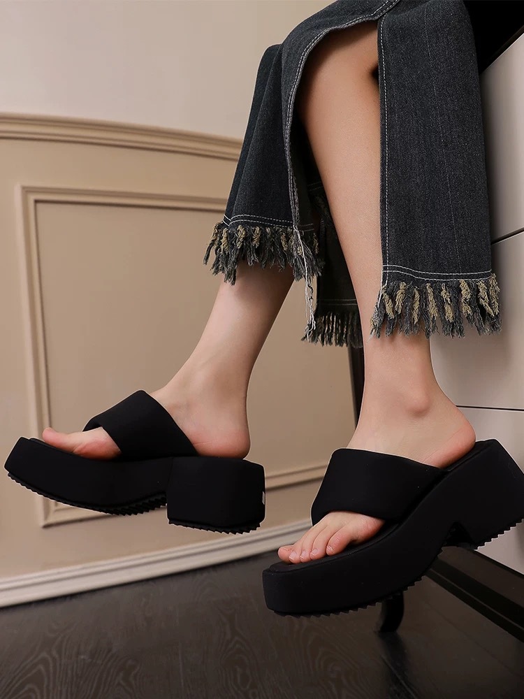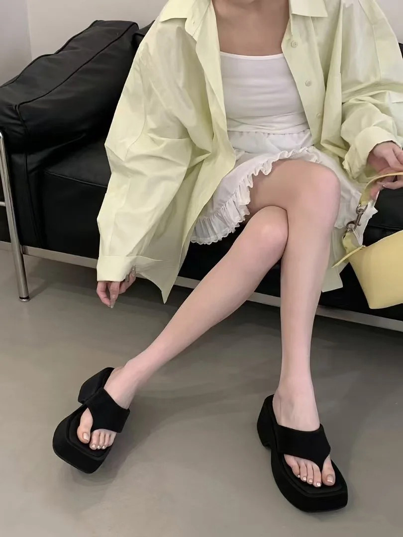 2025년 신형 두꺼운 밑창으로 작은 사람들을 위한 발가락 슬리퍼, 여성용 사각 발가락 샌들, 여름 아우터 슬리퍼