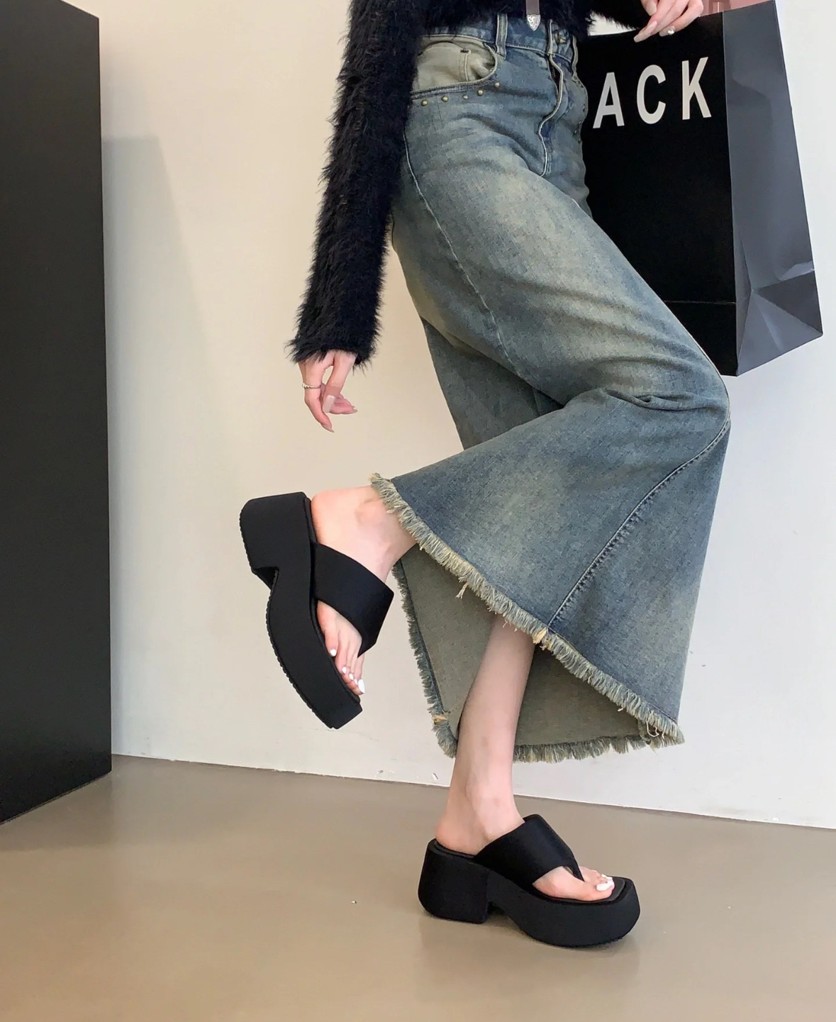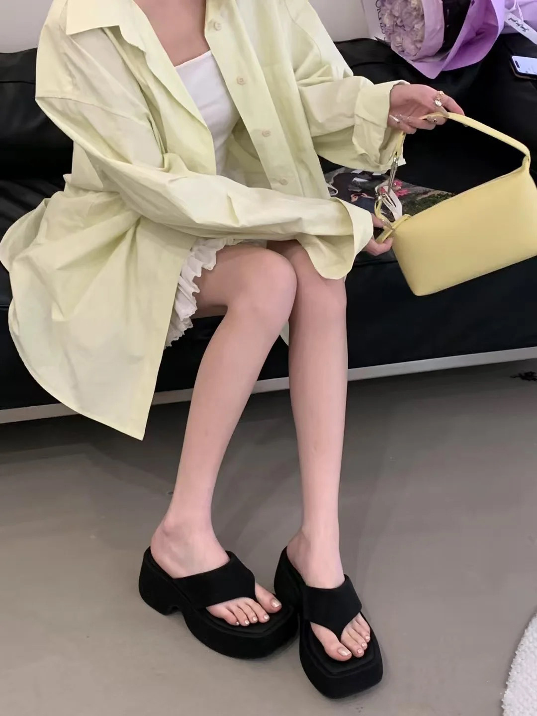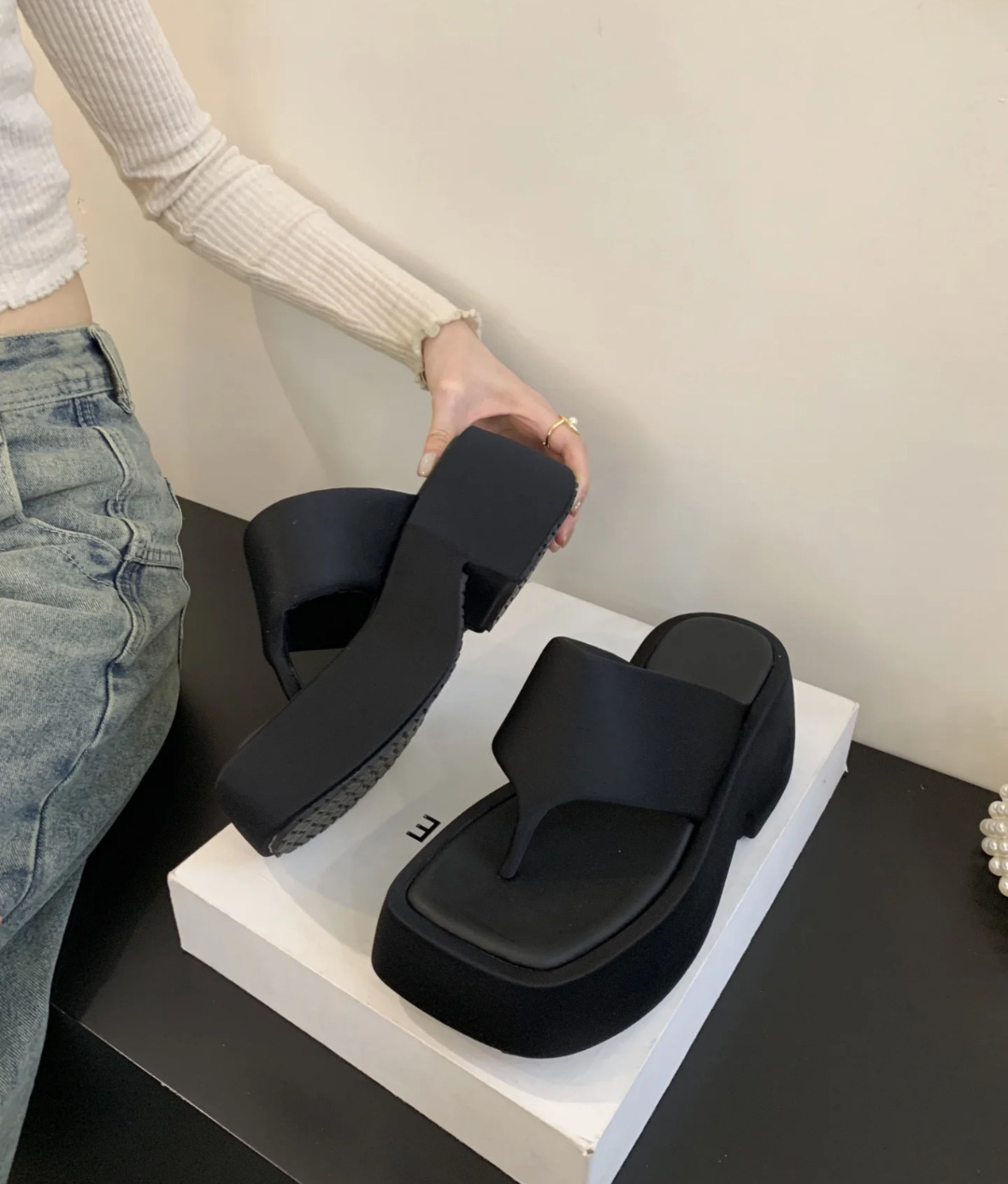 2025년 신형 두꺼운 밑창으로 작은 사람들을 위한 발가락 슬리퍼, 여성용 사각 발가락 샌들, 여름 아우터 슬리퍼스토어 가기