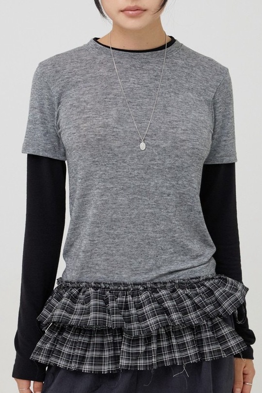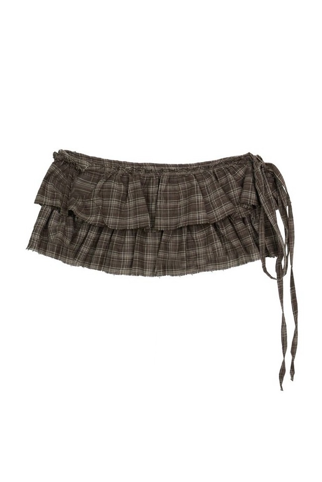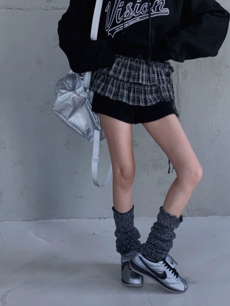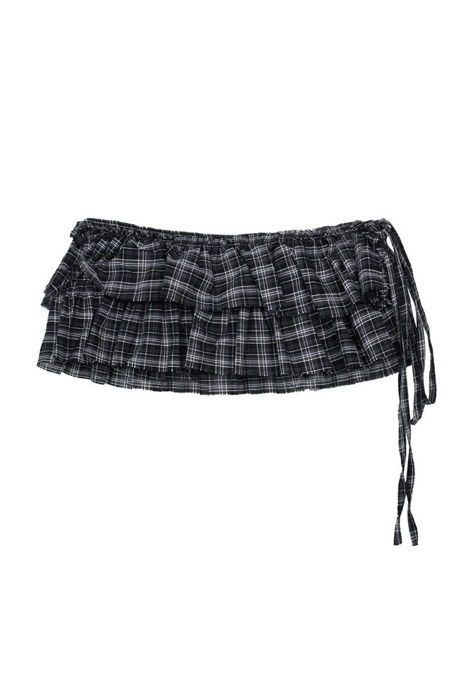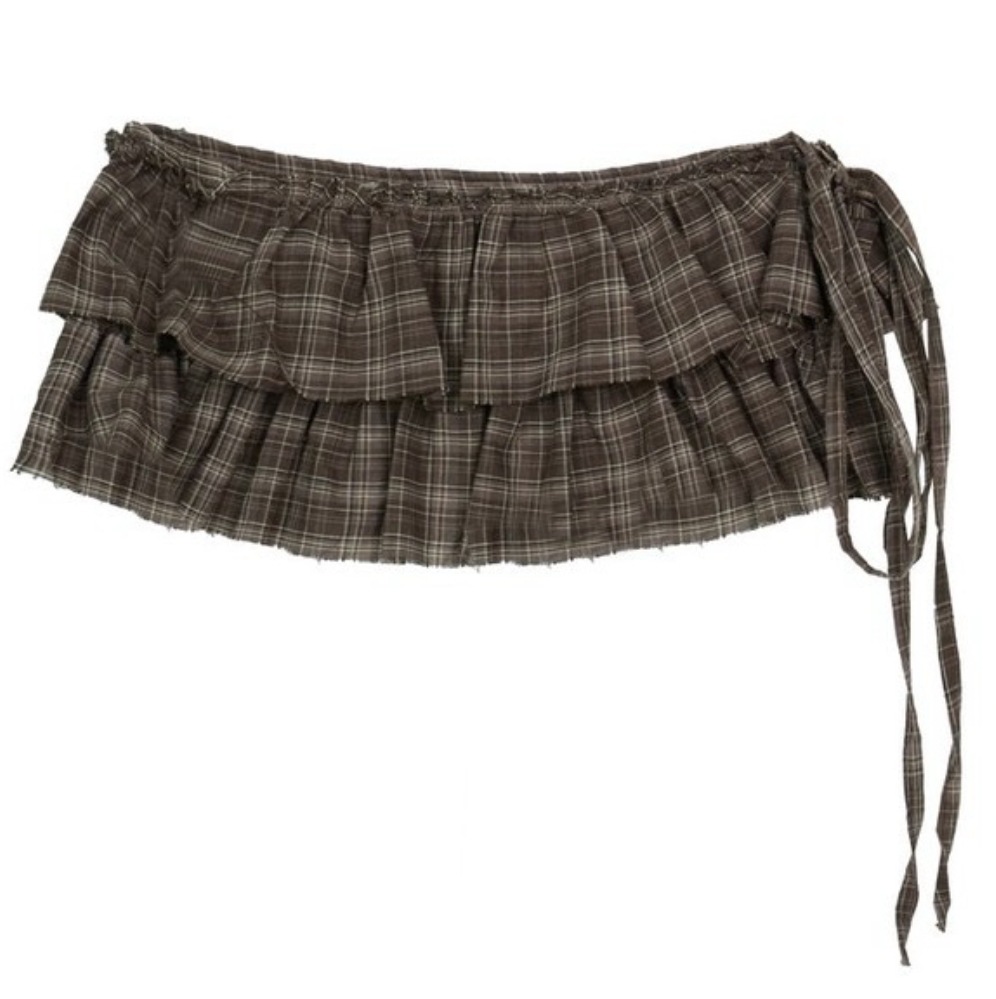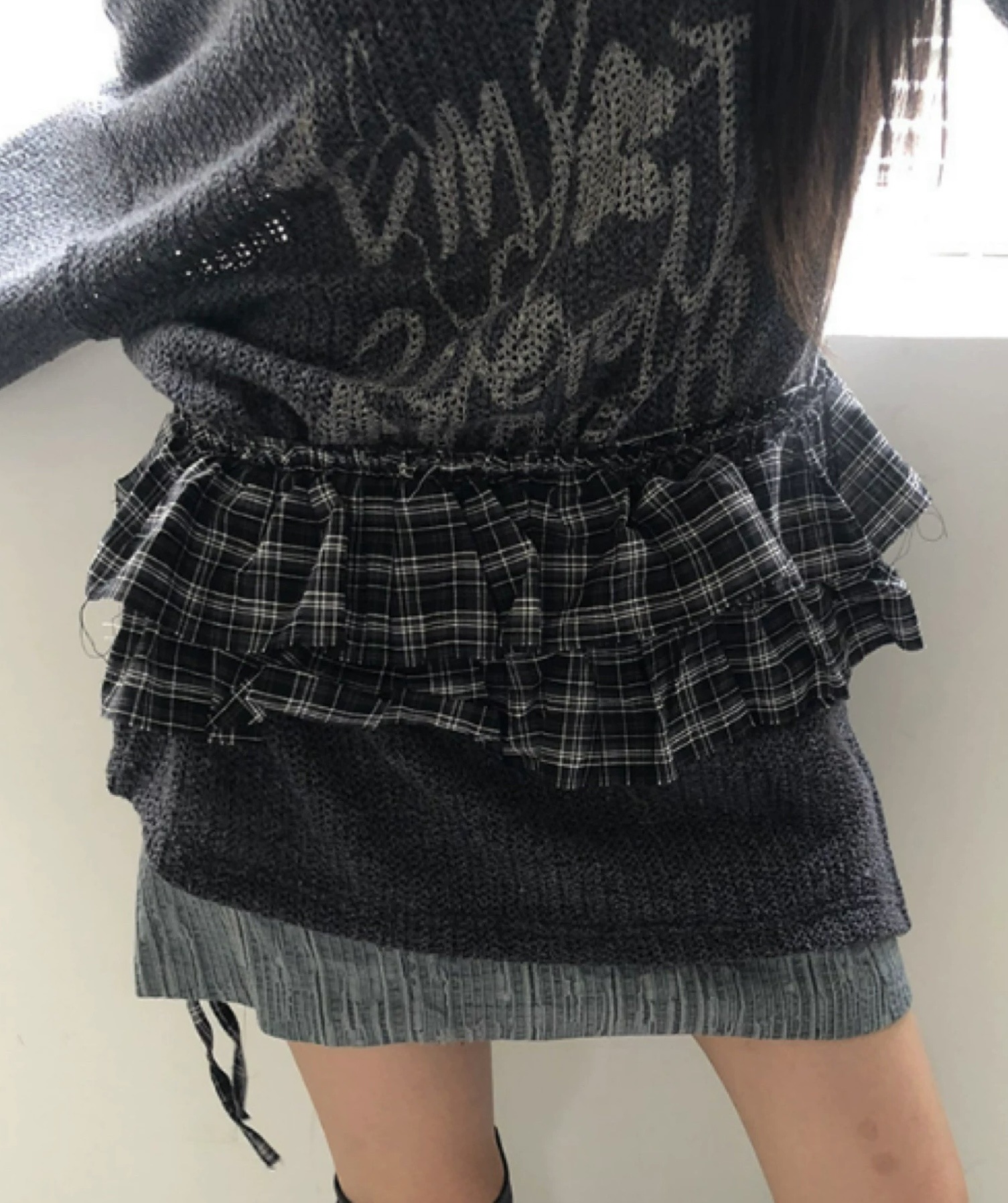 투톤 레이어드 아이템 일본식 한국 인스 레트로 체크무늬 주름 레이스 허리끈 스커트 힙 커튼 스커트