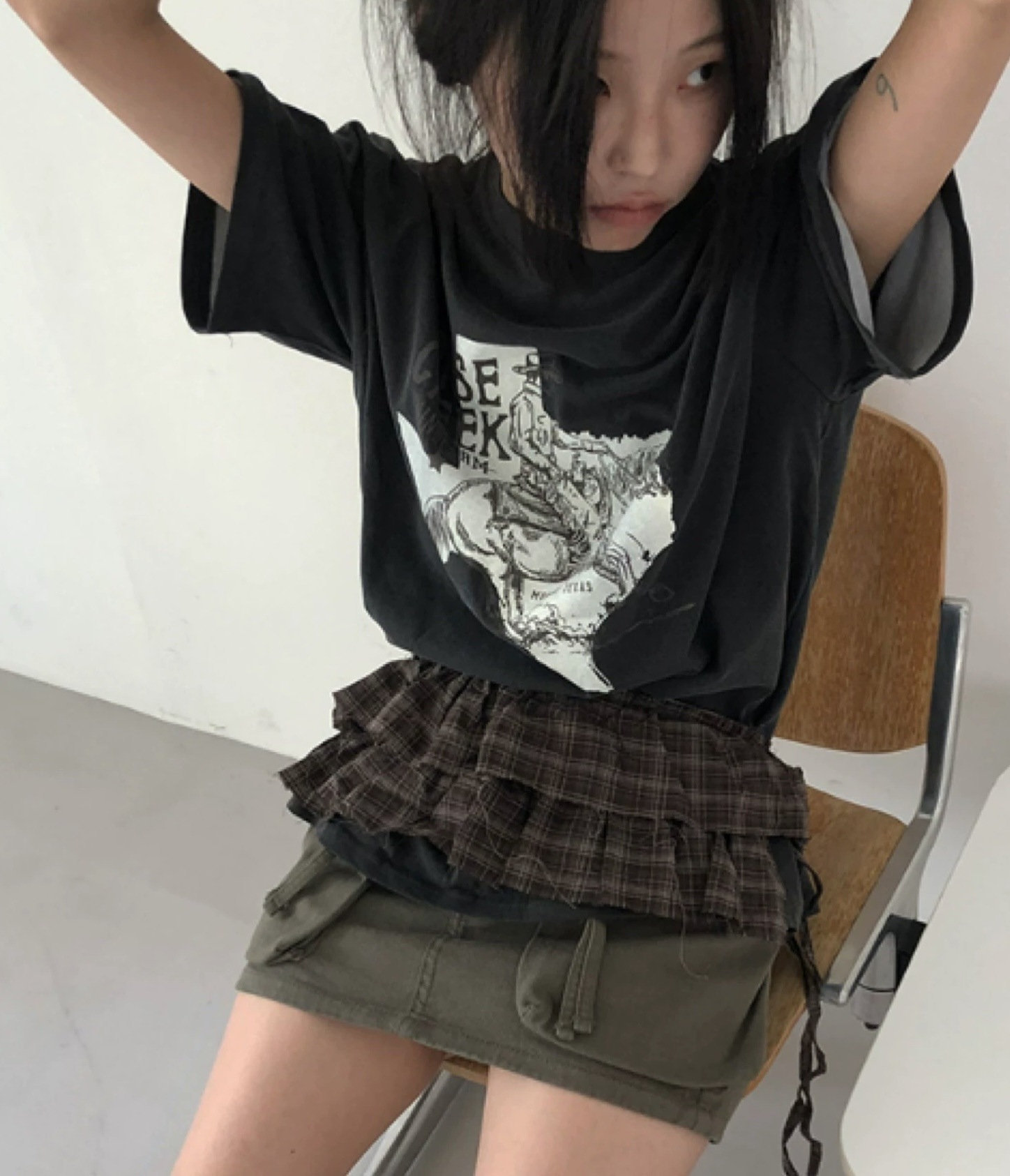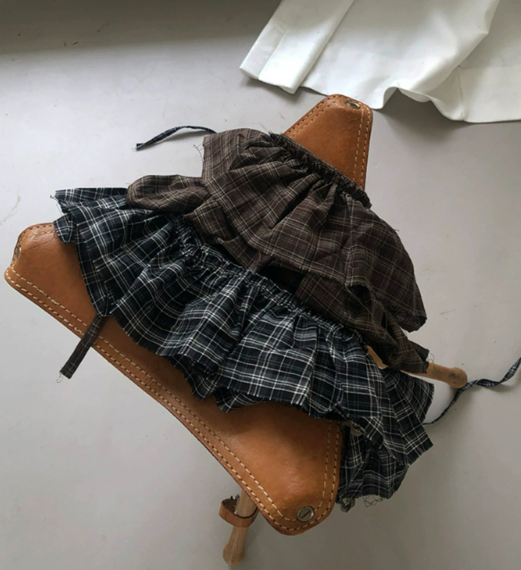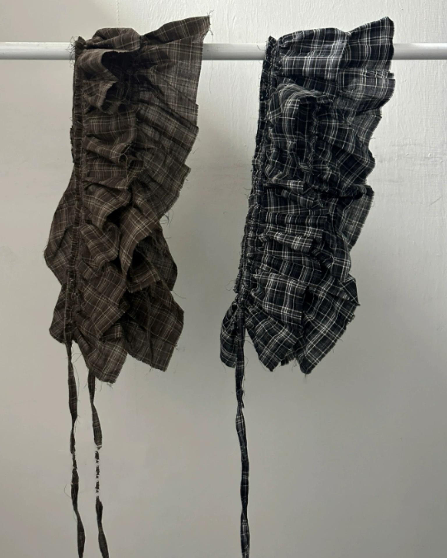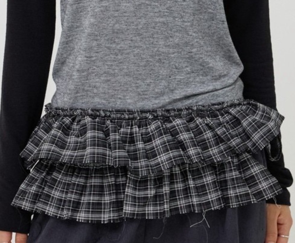 투톤 레이어드 아이템 일본식 한국 인스 레트로 체크무늬 주름 레이스 허리끈 스커트 힙 커튼 스커트스토어 가기
