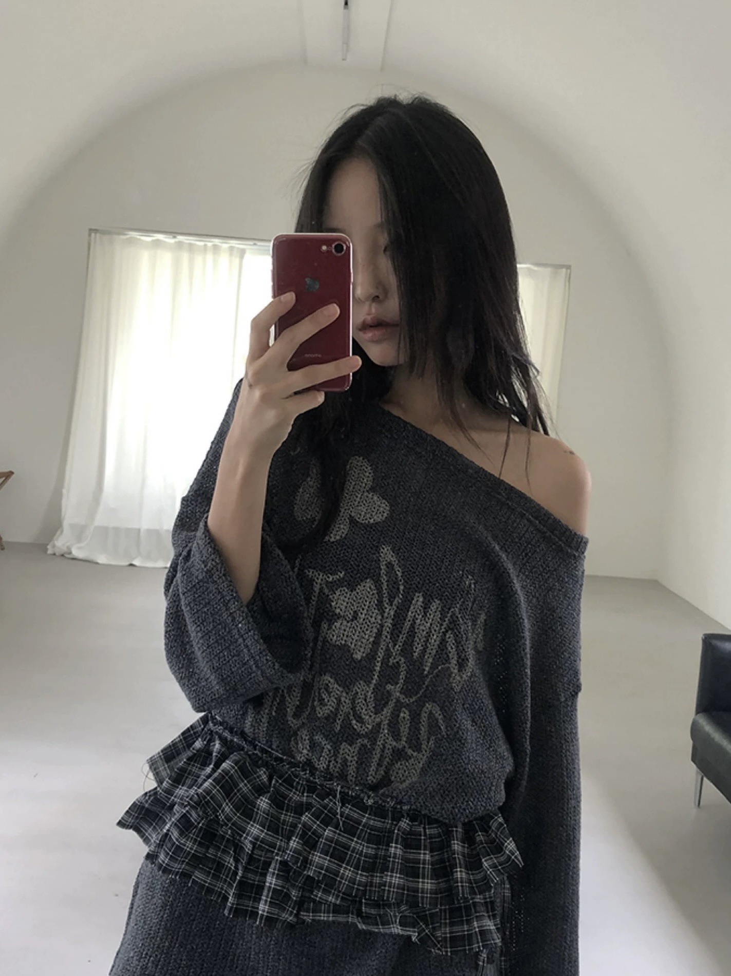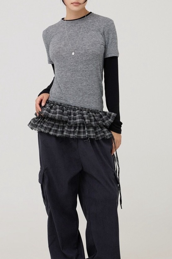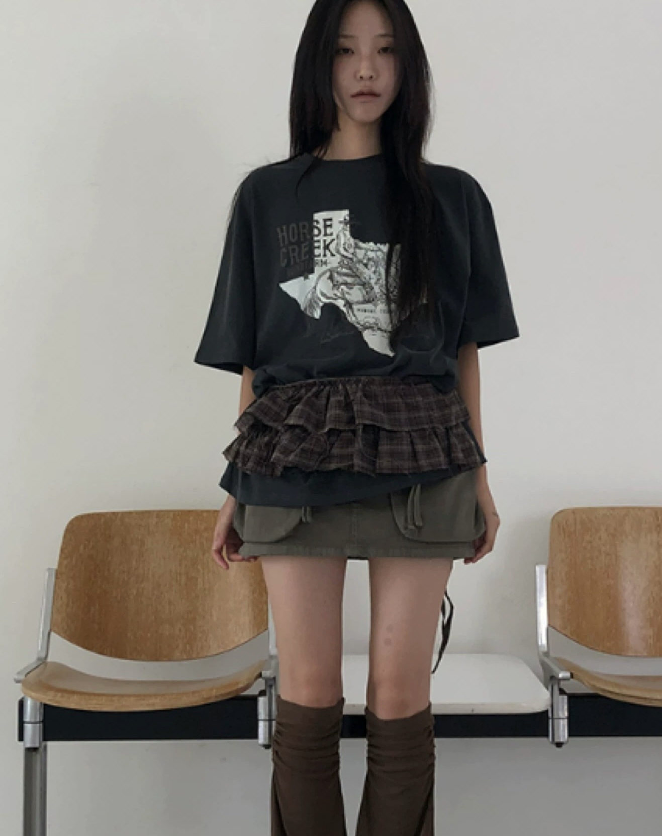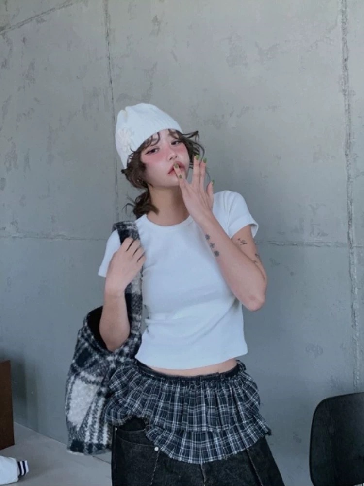 투톤 레이어드 아이템 일본식 한국 인스 레트로 체크무늬 주름 레이스 허리끈 스커트 힙 커튼 스커트스토어 가기