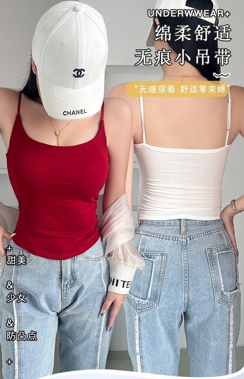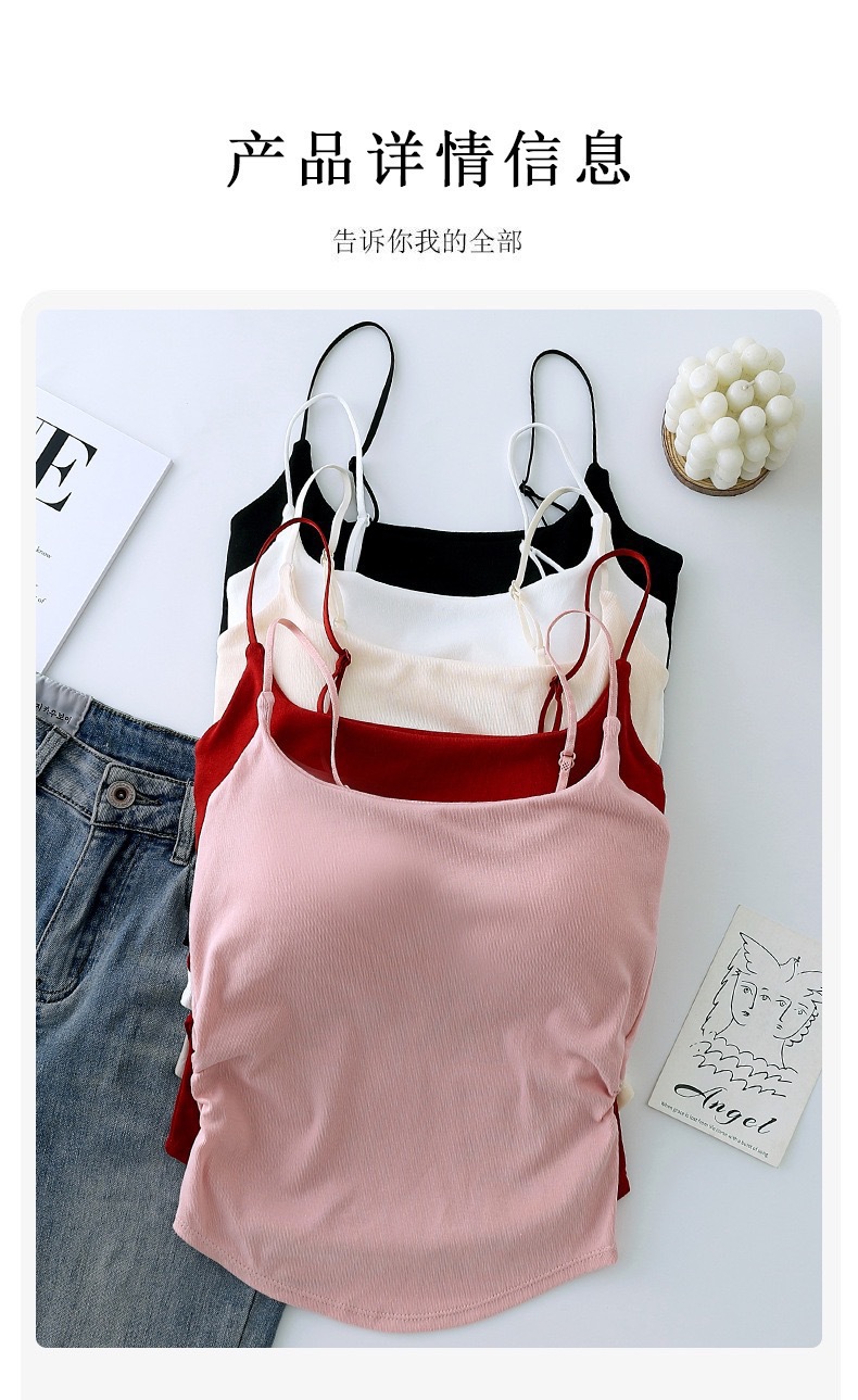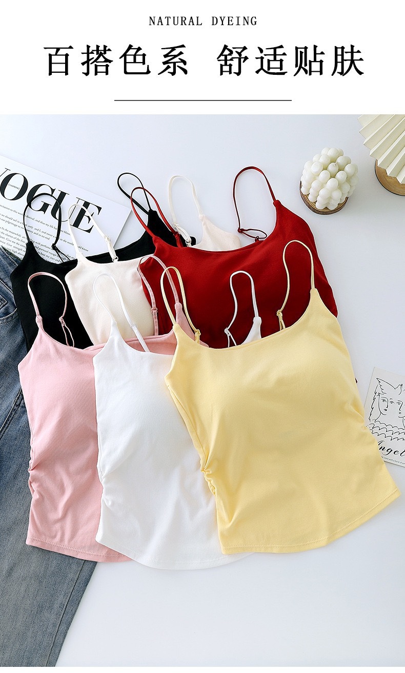 한국식 짧은 캐미솔, 순수하고 달콤한 핫걸 주름 장식, 아름다운 끈, 가슴 패드, 외부 착용, 바닥 슬리밍 탑