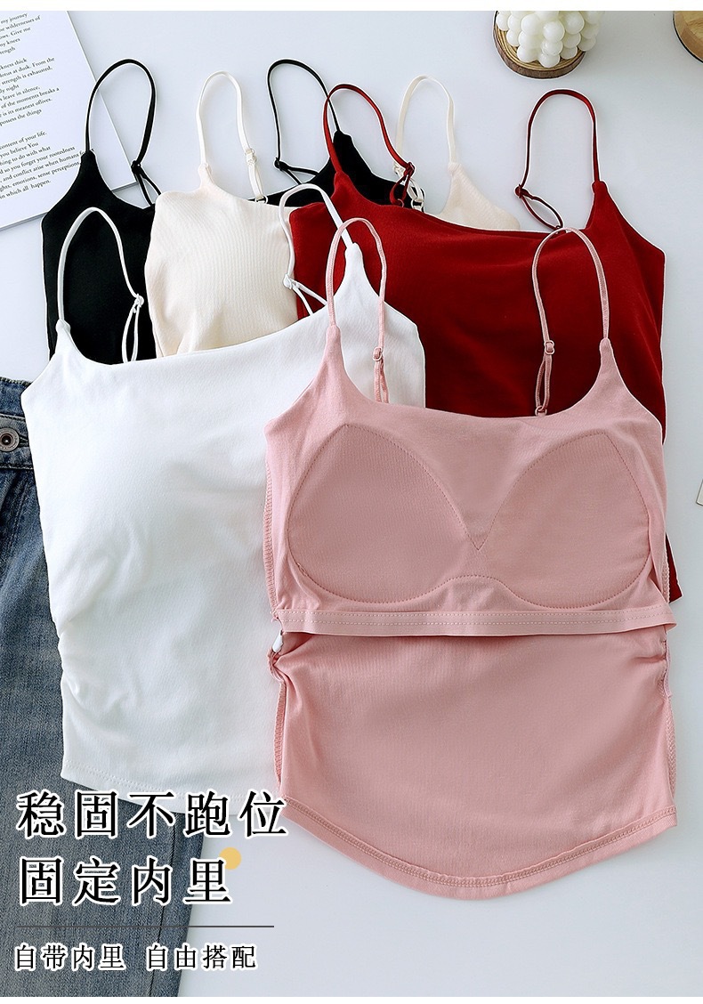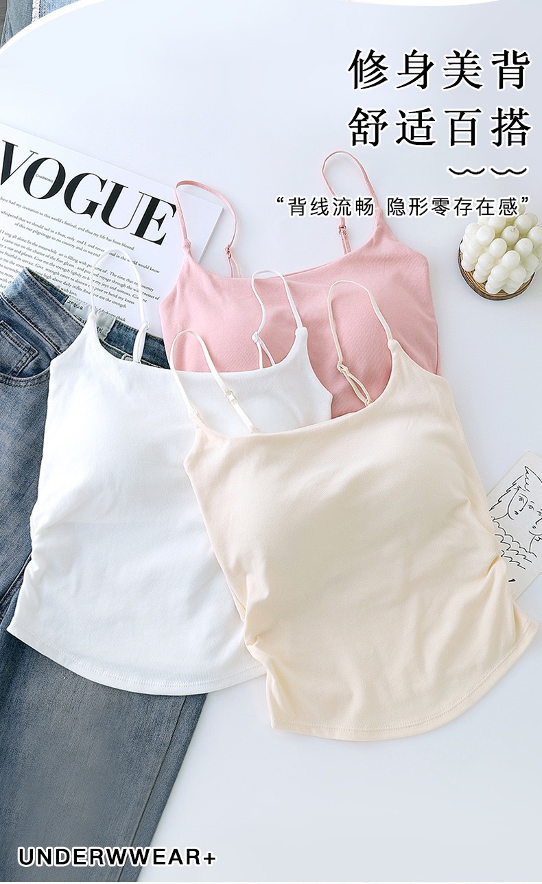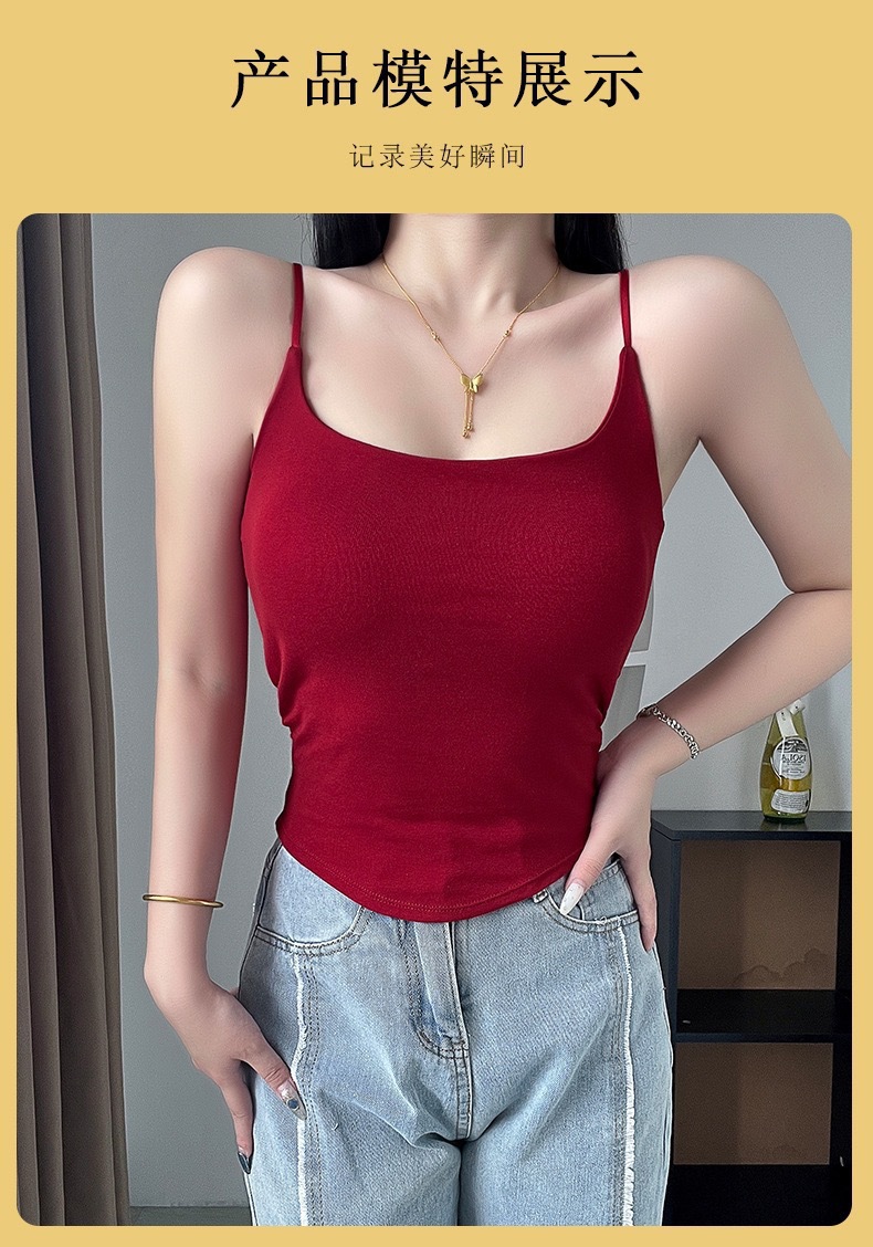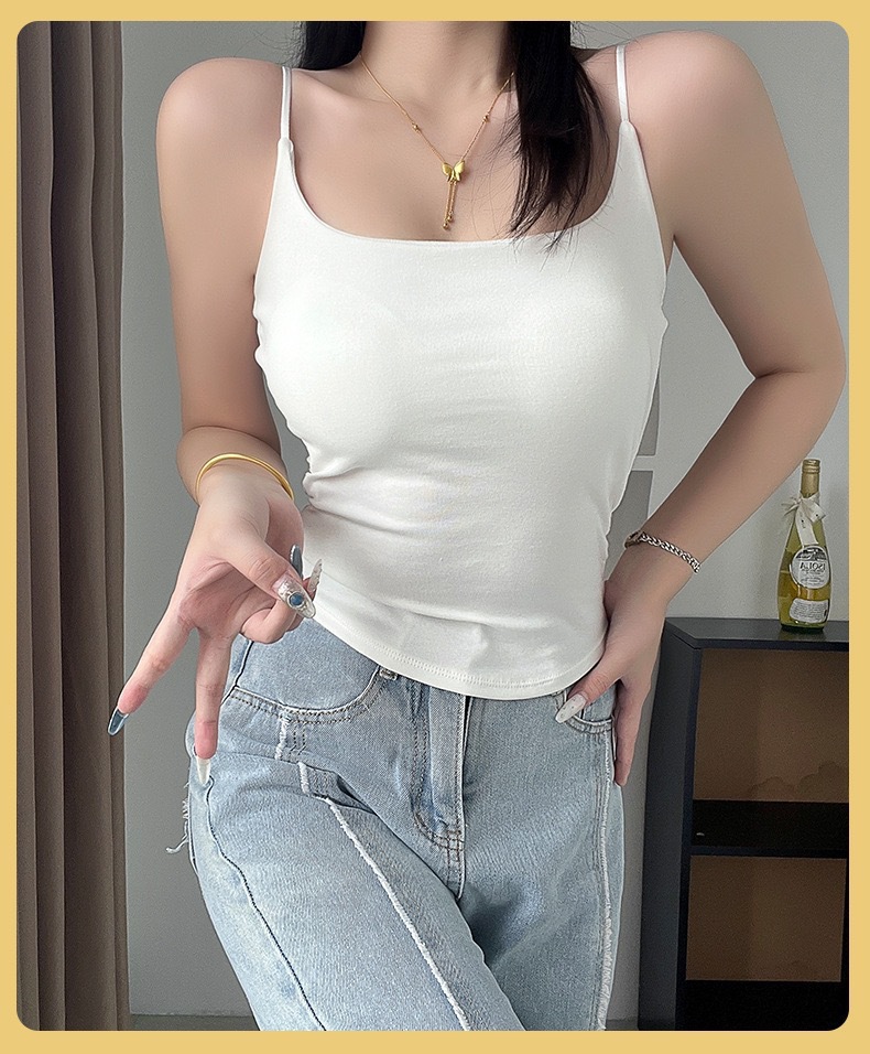 한국식 짧은 캐미솔, 순수하고 달콤한 핫걸 주름 장식, 아름다운 끈, 가슴 패드, 외부 착용, 바닥 슬리밍 탑
