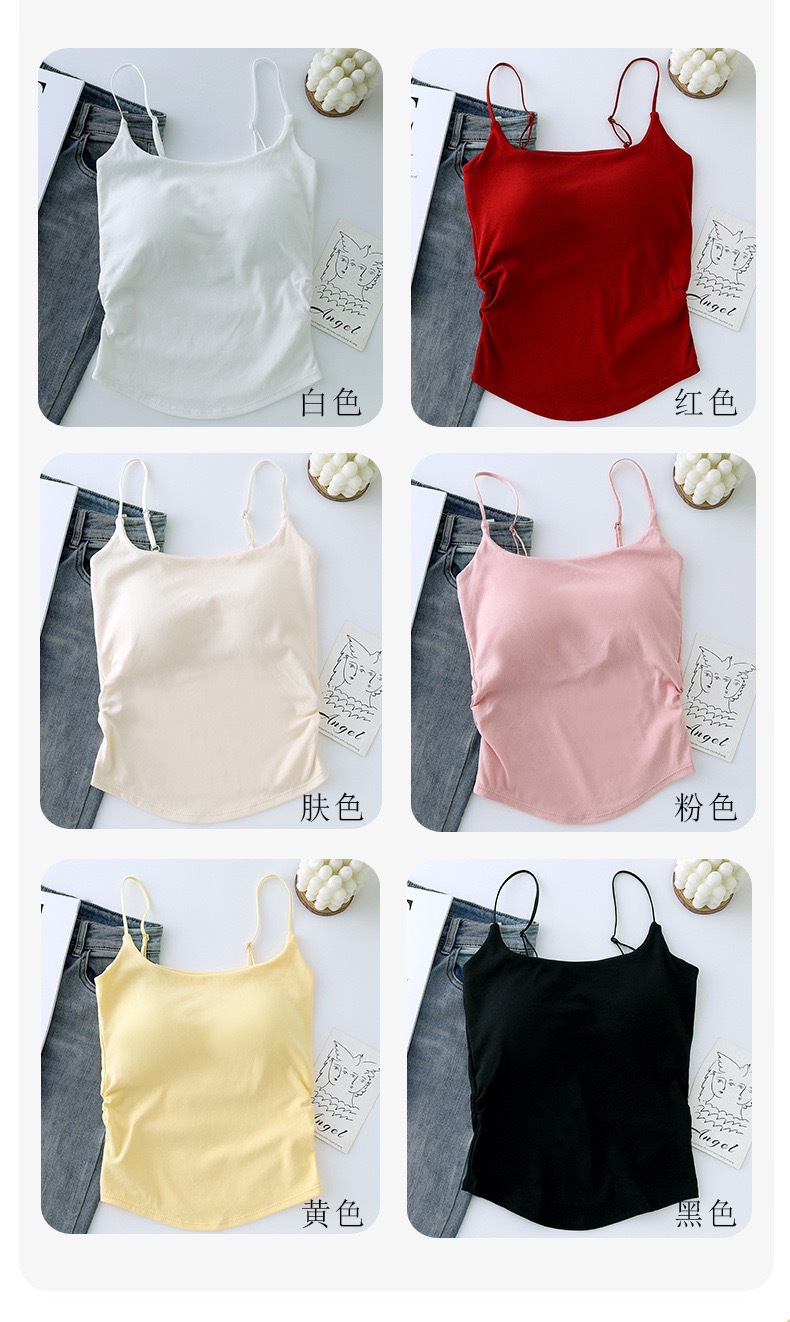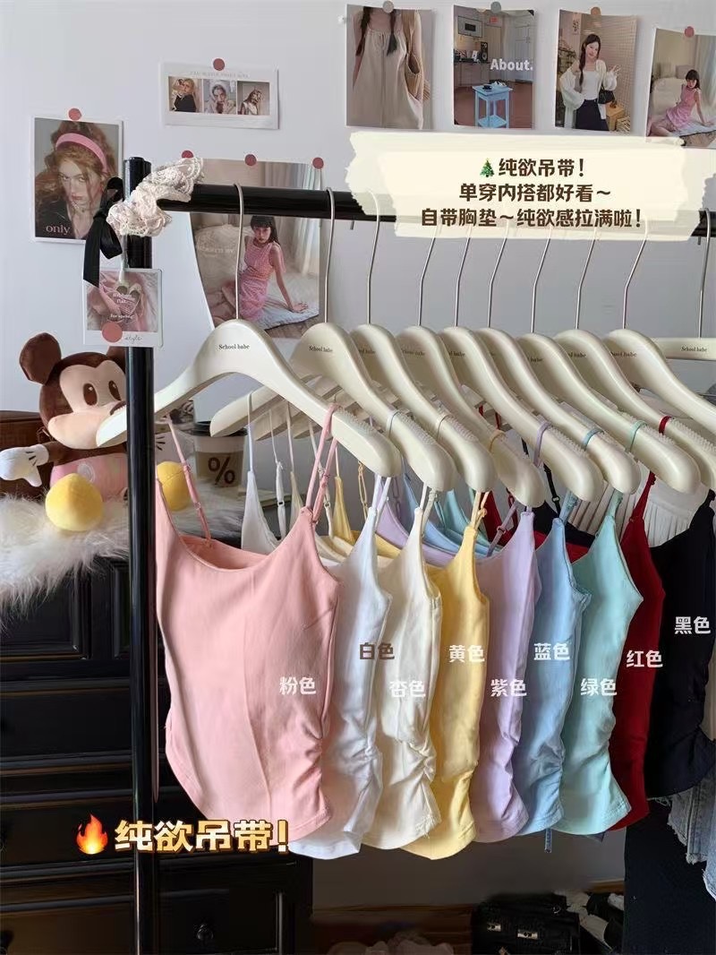 한국식 짧은 캐미솔, 순수하고 달콤한 핫걸 주름 장식, 아름다운 끈, 가슴 패드, 외부 착용, 바닥 슬리밍 탑스토어 가기
