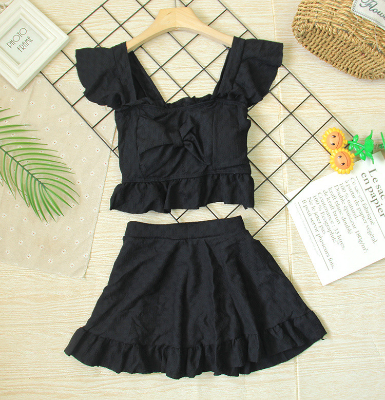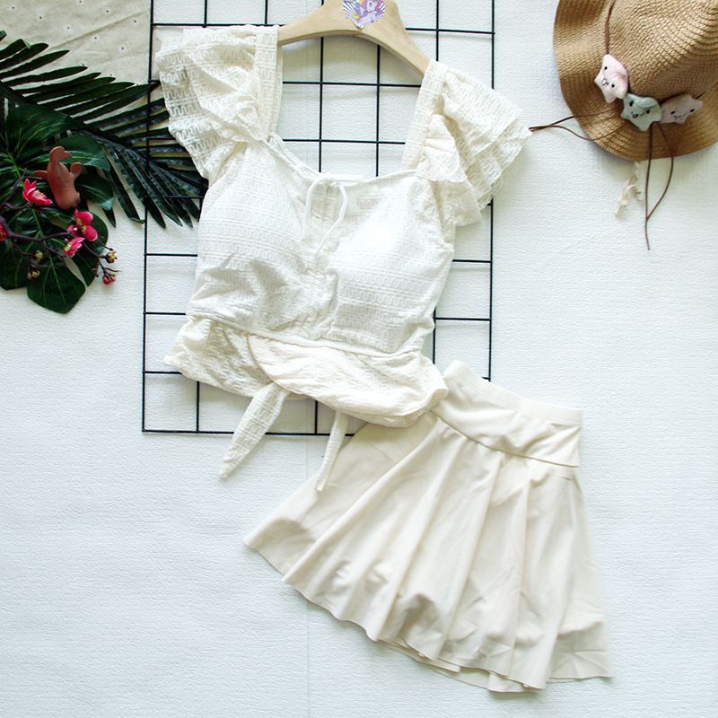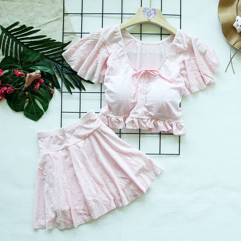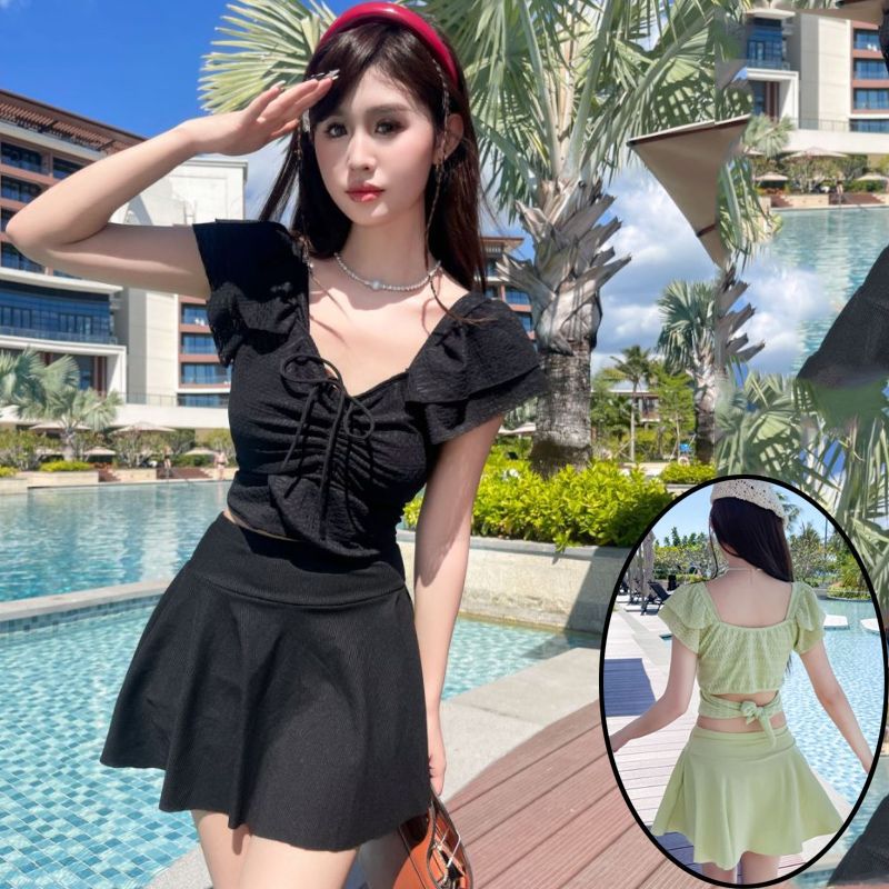 여름 온천을위한 단색 투피스 수영복 소녀 스플릿 심플 인 스타일 프릴 2025 새로운 수영복
