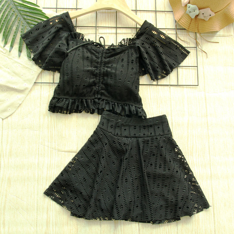 여름 온천을위한 단색 투피스 수영복 소녀 스플릿 심플 인 스타일 프릴 2025 새로운 수영복스토어 가기