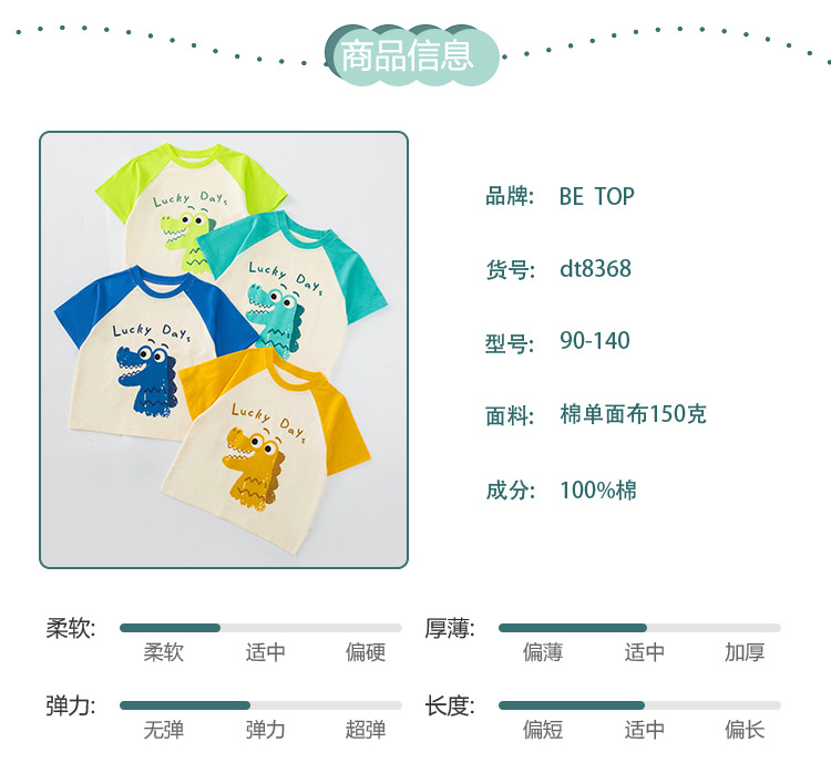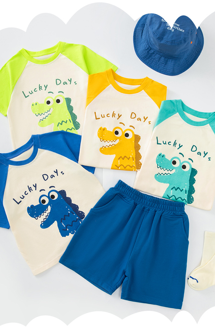 Betop 아동복 어린이 반팔 티셔츠 소년 여름 새로운 아기 소매 옷 만화 악어 헤어 세대