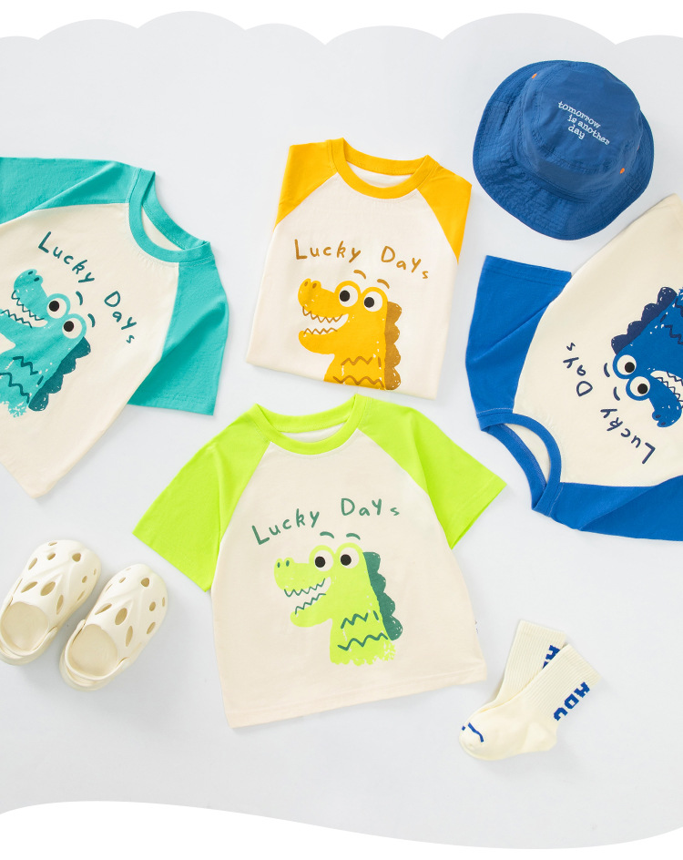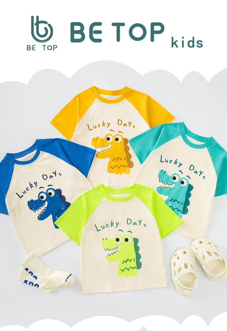 Betop 아동복 어린이 반팔 티셔츠 소년 여름 새로운 아기 소매 옷 만화 악어 헤어 세대스토어 가기