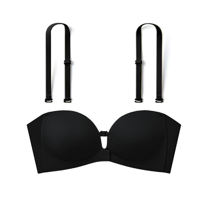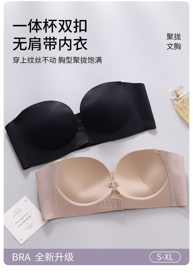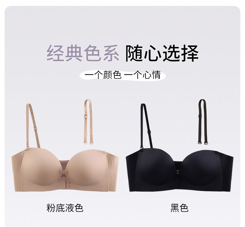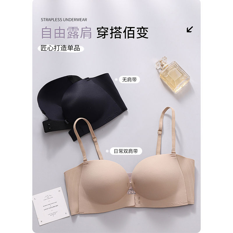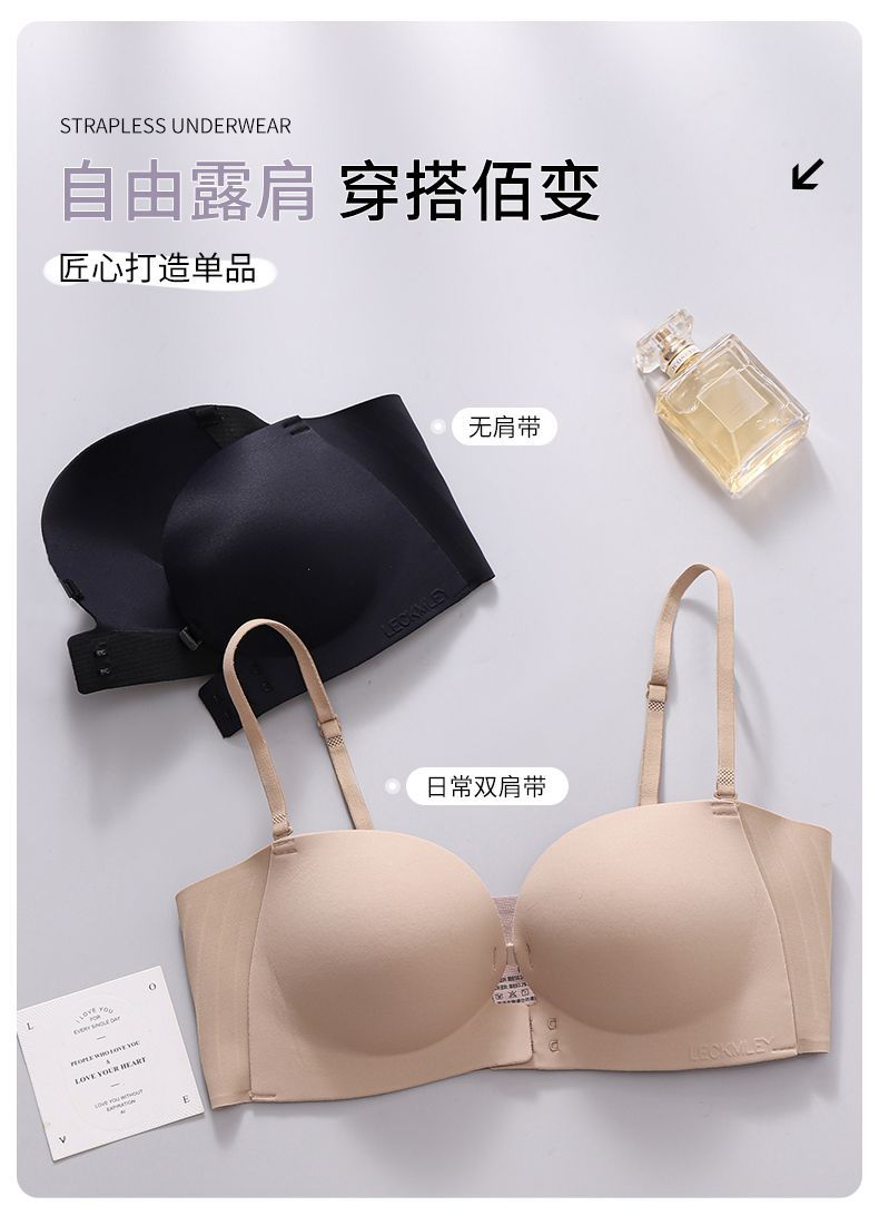 Xingtong의 2세대 여성용 프론트 버튼 튜브탑 브라, 작은 가슴 푸시업 심리스 브라, 여름용 보이지 않는 미끄럼 방지 스트랩리스