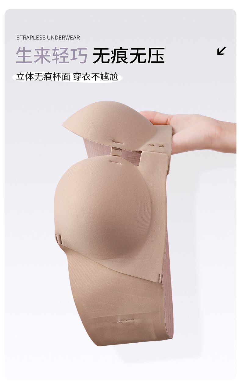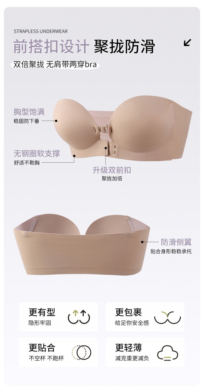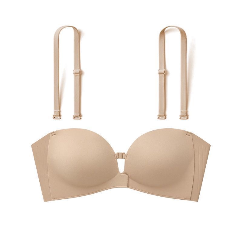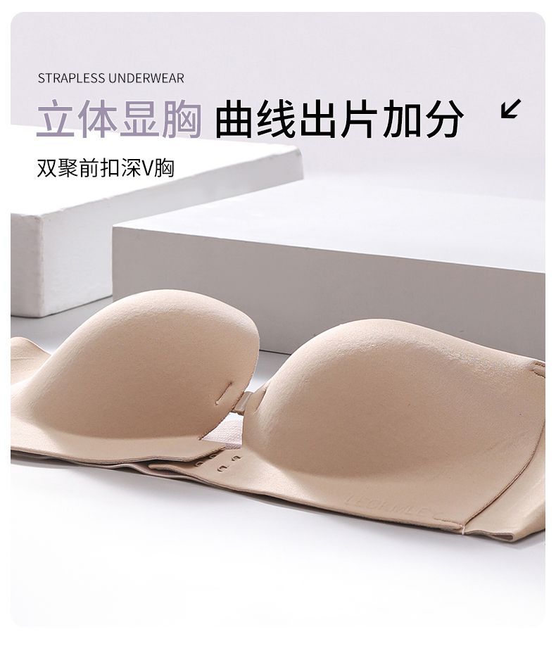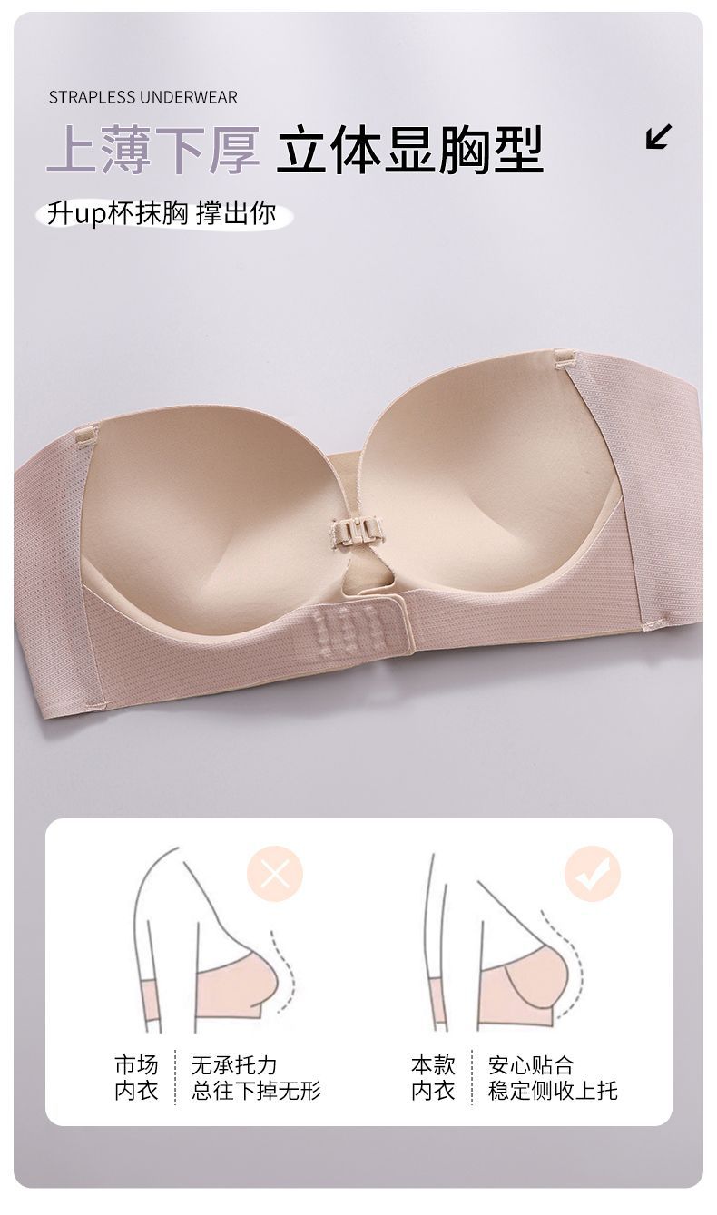 Xingtong의 2세대 여성용 프론트 버튼 튜브탑 브라, 작은 가슴 푸시업 심리스 브라, 여름용 보이지 않는 미끄럼 방지 스트랩리스스토어 가기