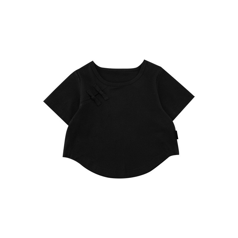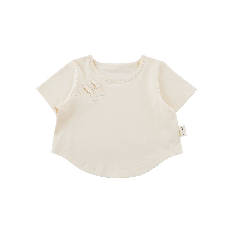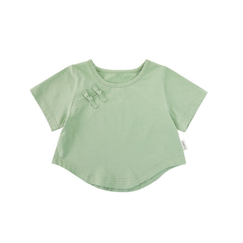 Wulibuyi 여자 솔리드 컬러 국가 스타일 티셔츠 2025 여름 새로운 어린이 패션 반팔 티셔츠 베이비 탑