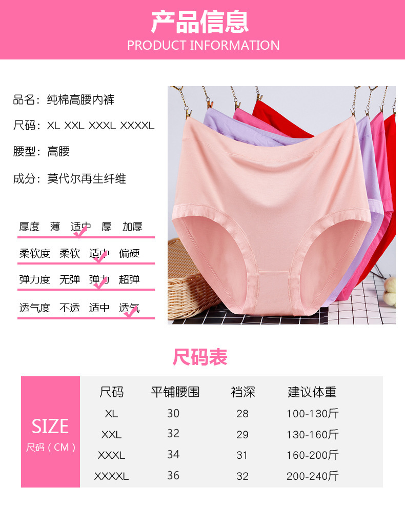 모달 플러스 사이즈 여성 속옷 하이 웨이스트 솔리드 컬러 지방 MM 105kg 통기성 엄마 중년 여성 팬티 대형스토어 가기