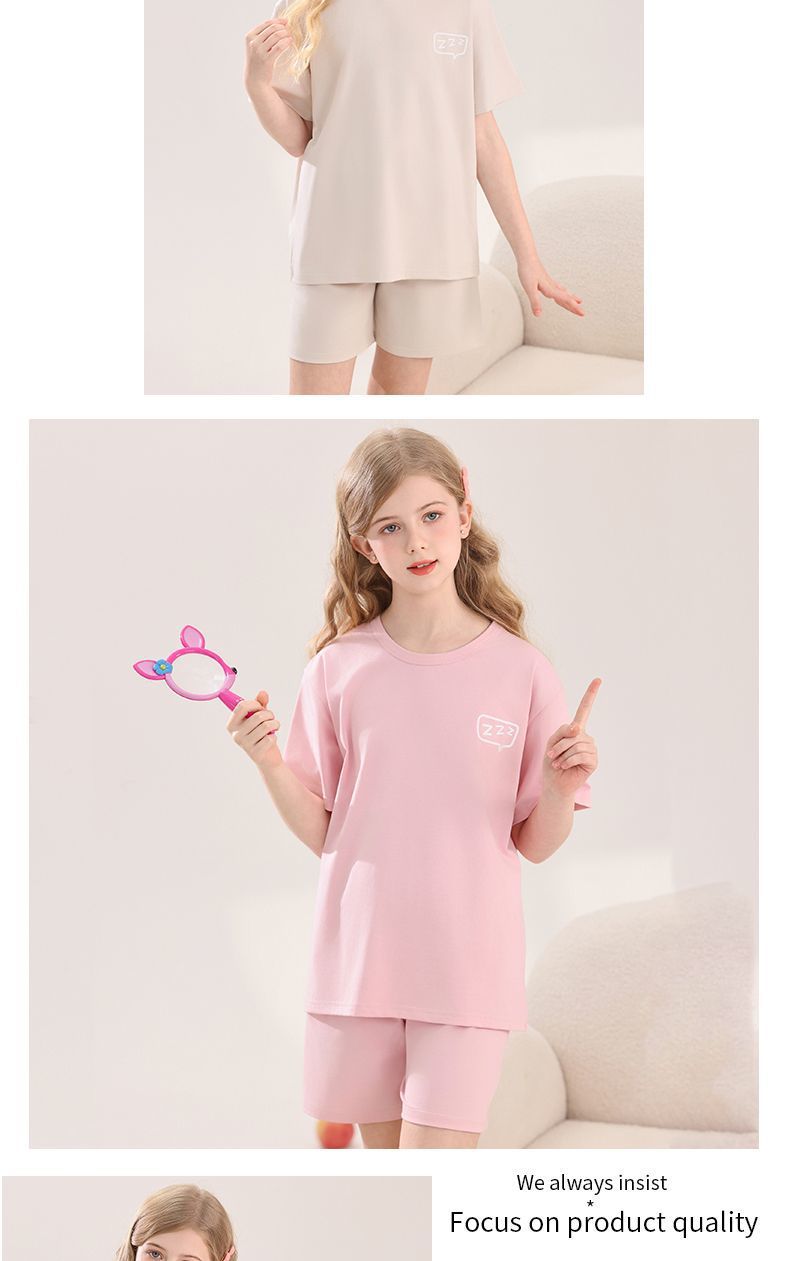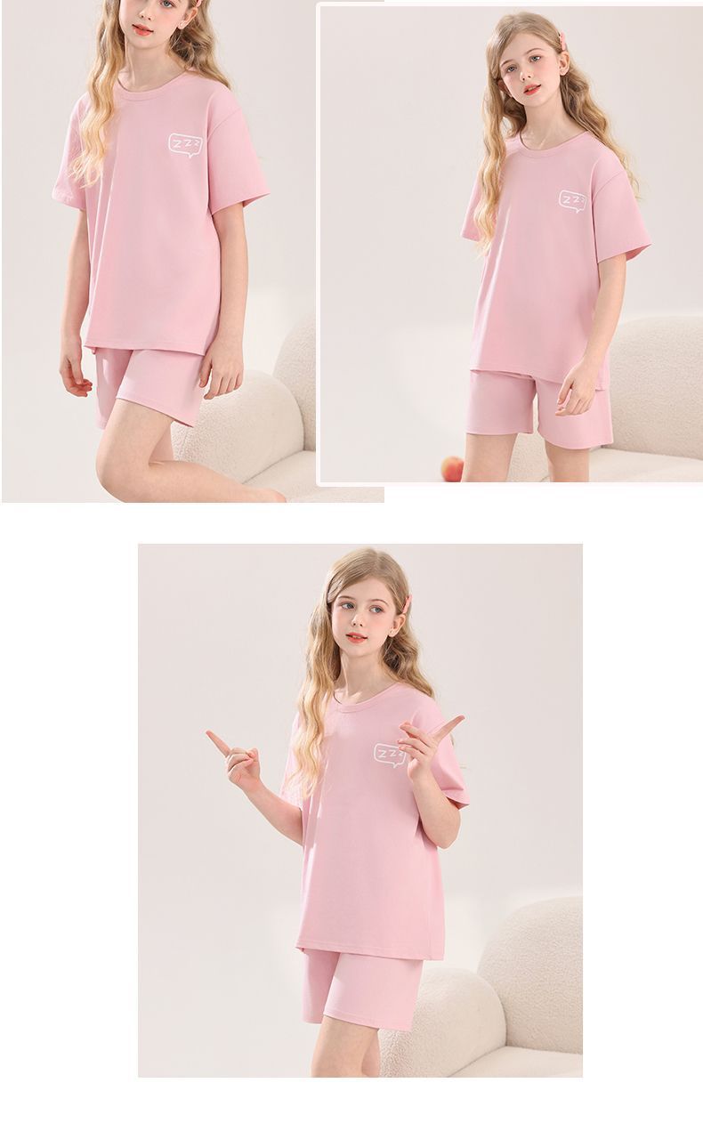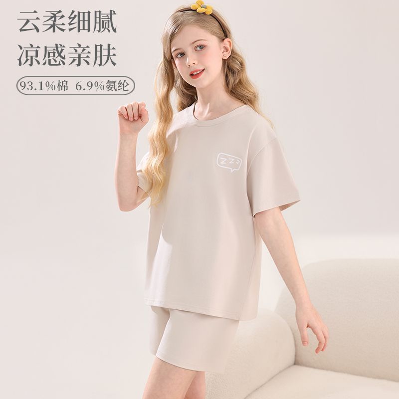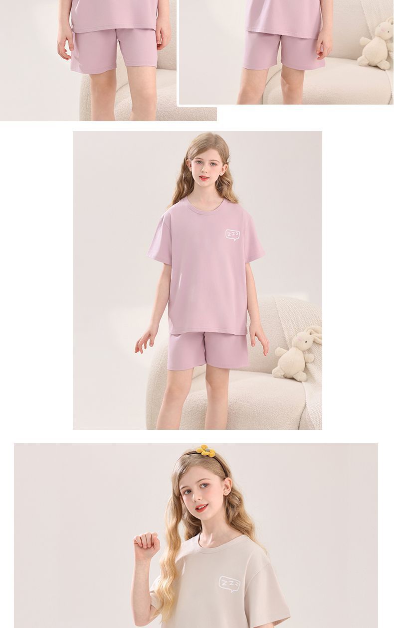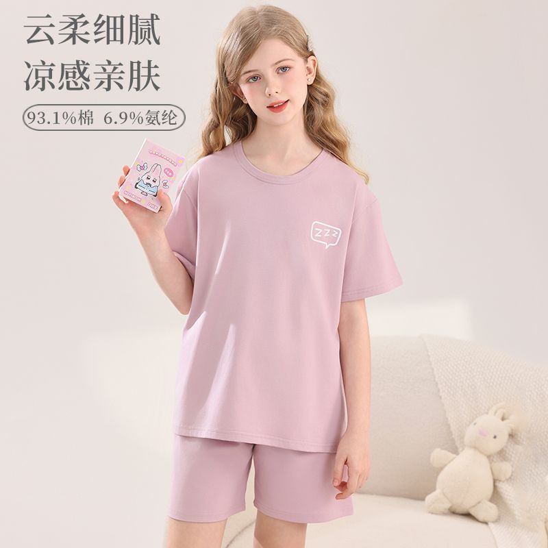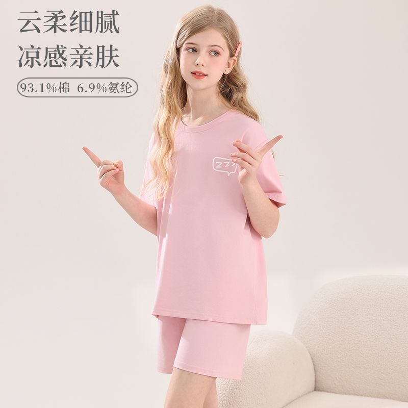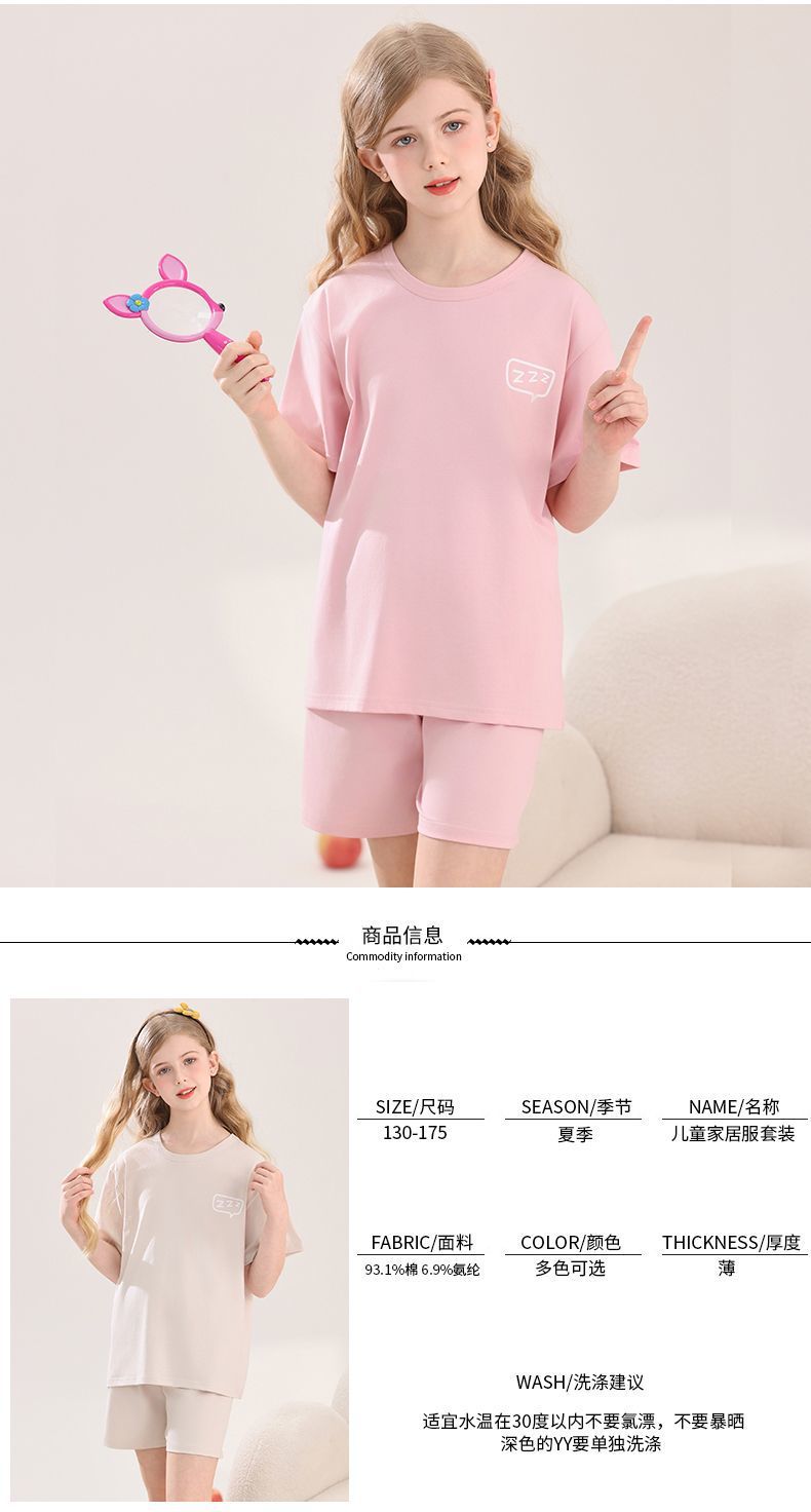 아동용 잠옷, 여아용 라이크라 면 가정복, 여아용 에어컨 의류, 중대형 아동용 반팔 반바지 정장, 얇은 여름
