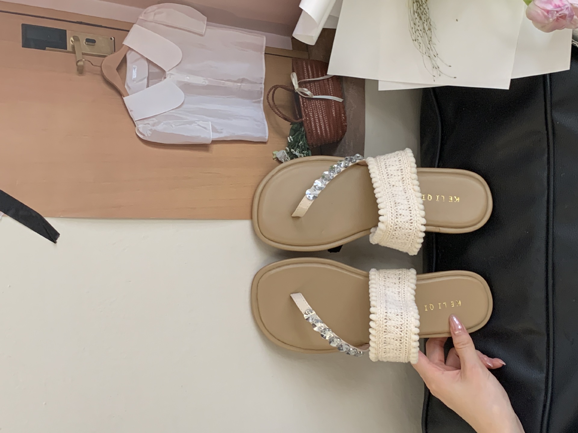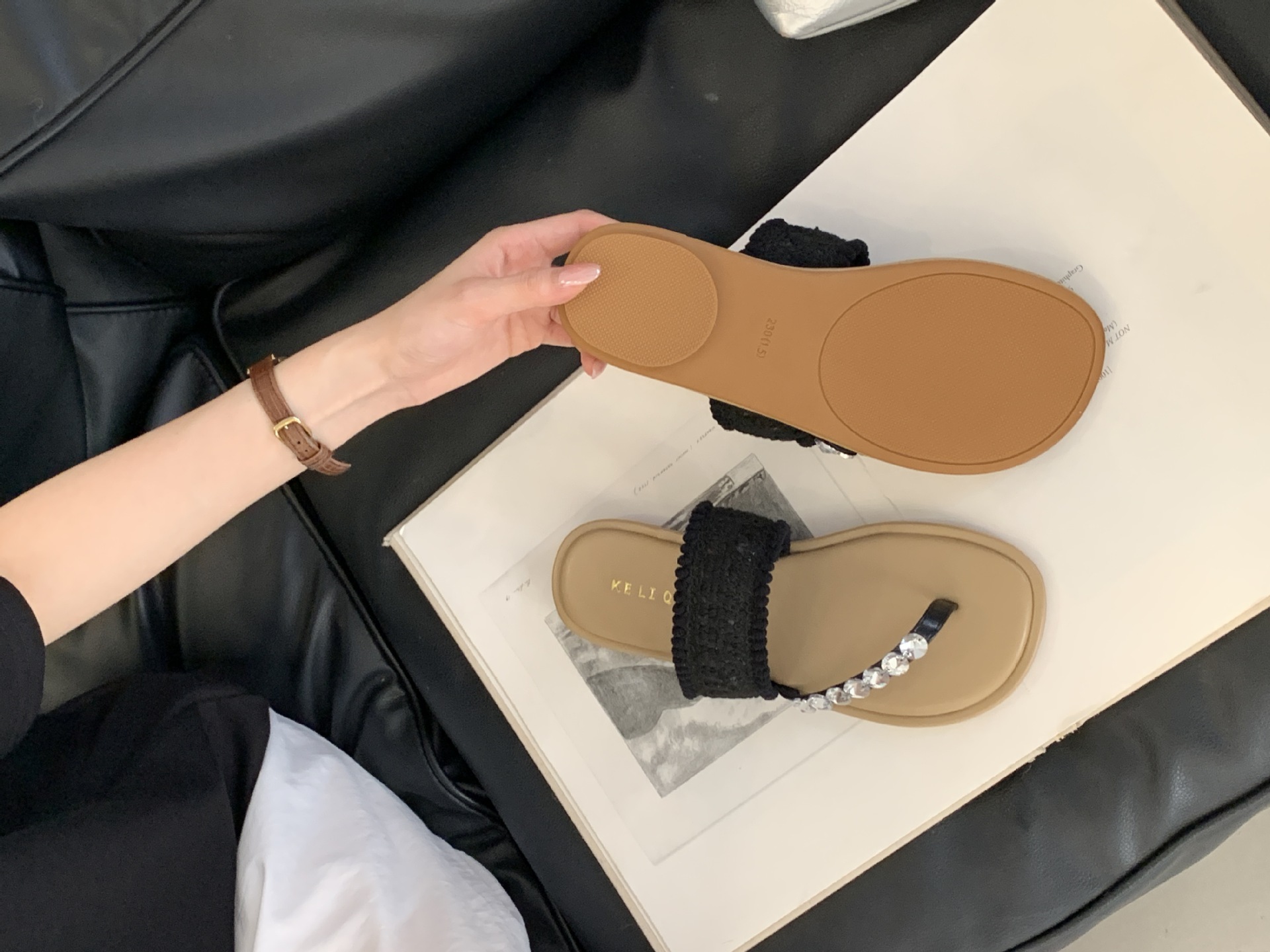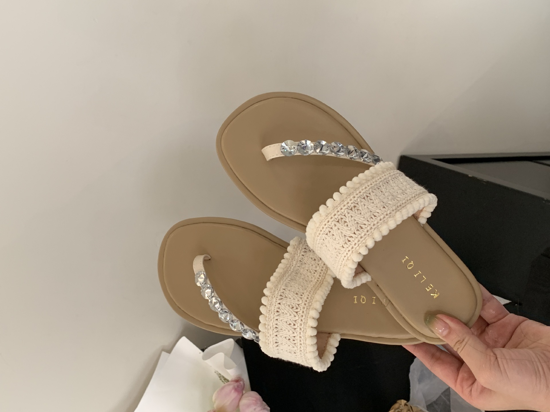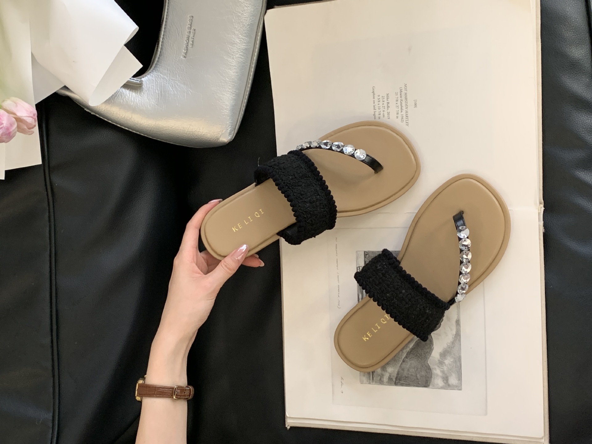 2025년 신상 여름 플랫 비치 슬리퍼, 라인스톤 슬리퍼, NS 스타일 패셔너블하고 활용도가 높은 비치 샌들