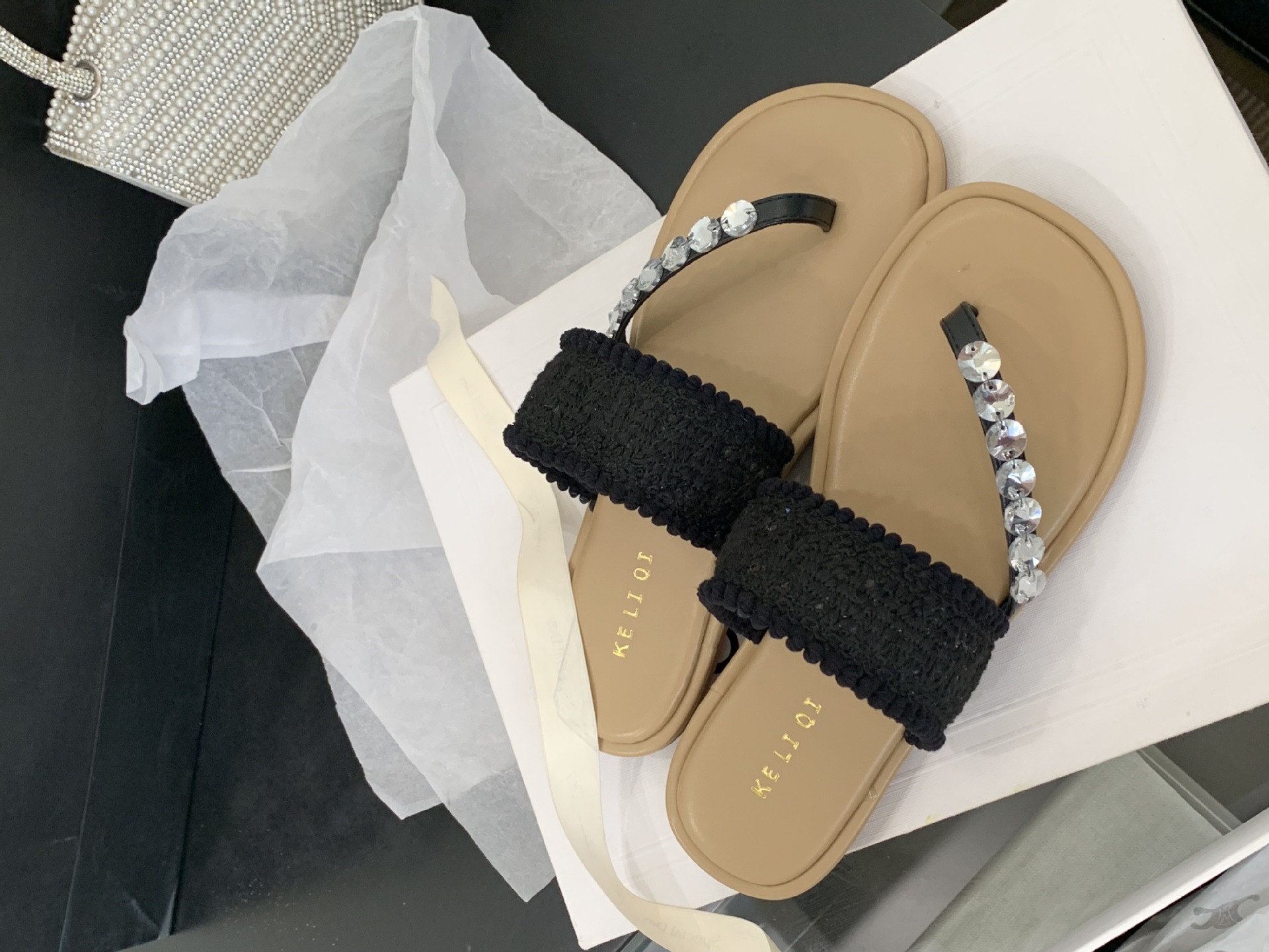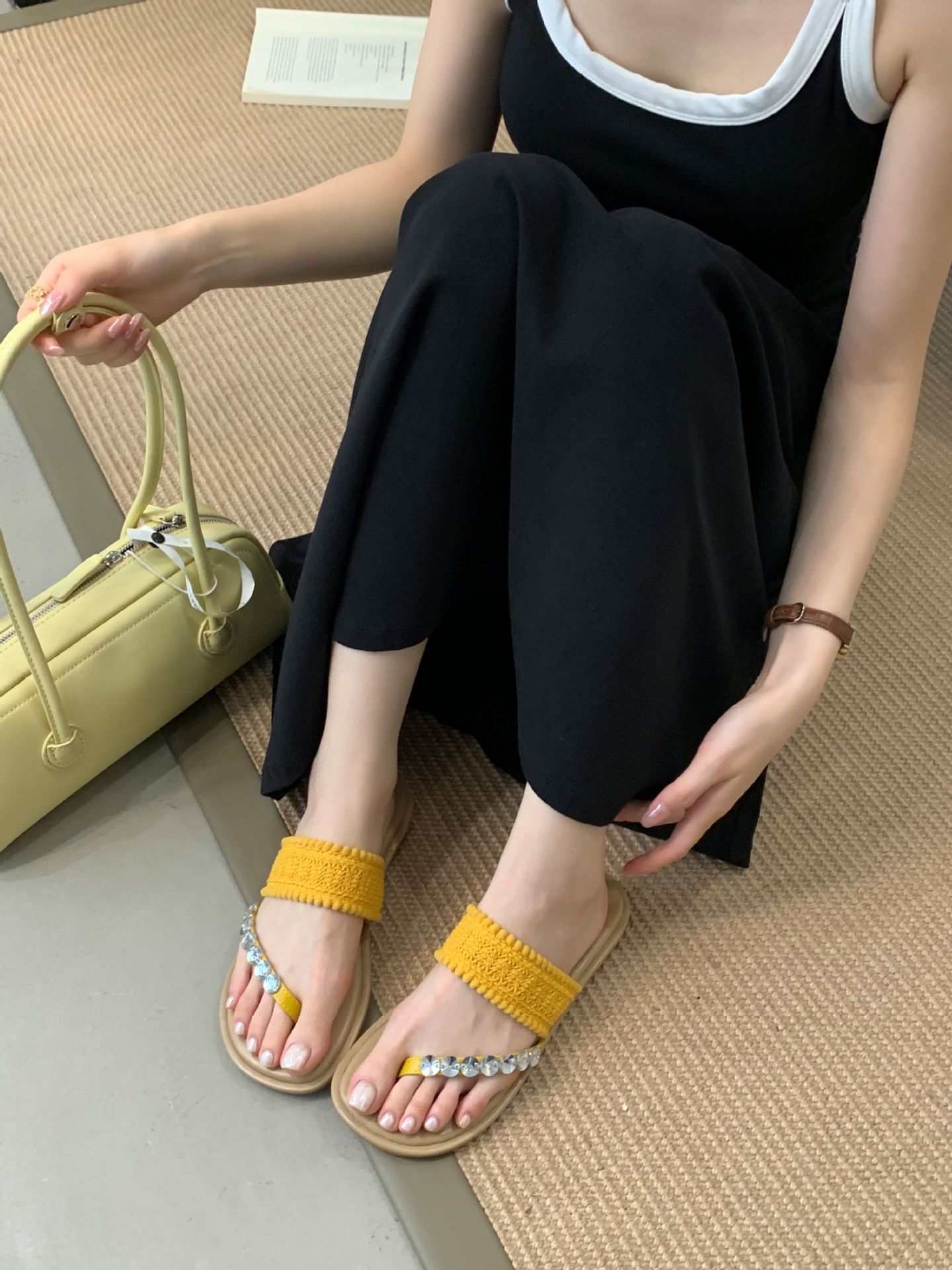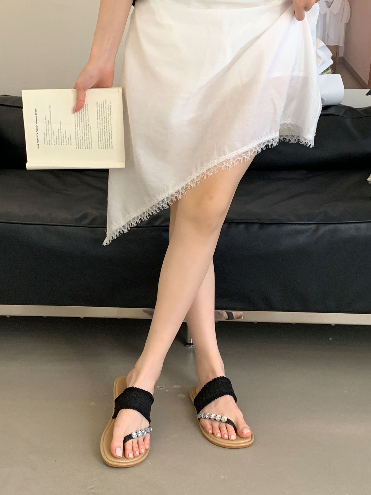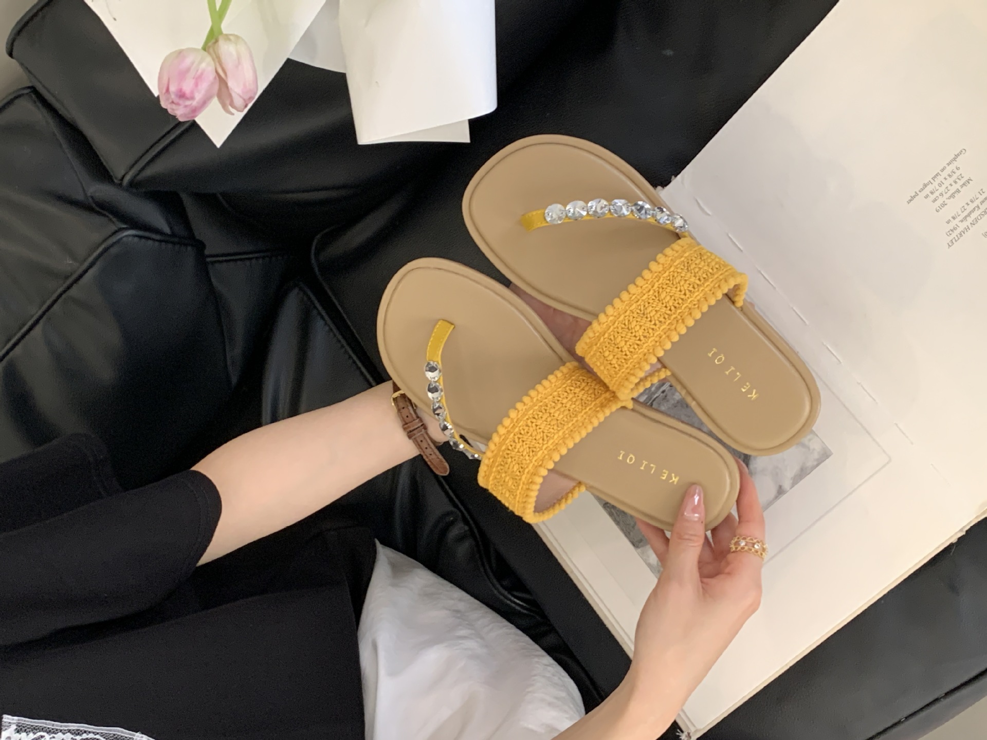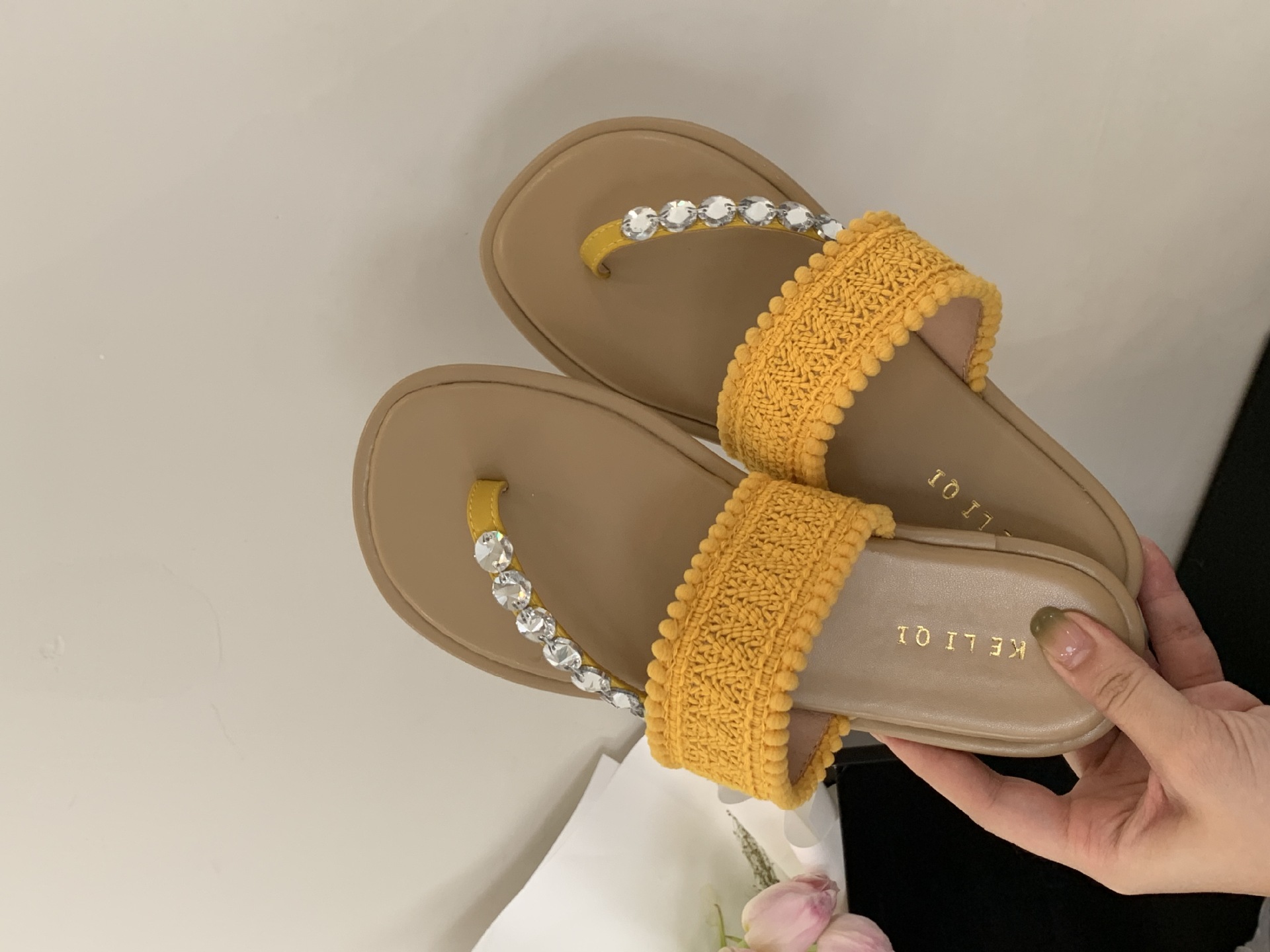 2025년 신상 여름 플랫 비치 슬리퍼, 라인스톤 슬리퍼, NS 스타일 패셔너블하고 활용도가 높은 비치 샌들