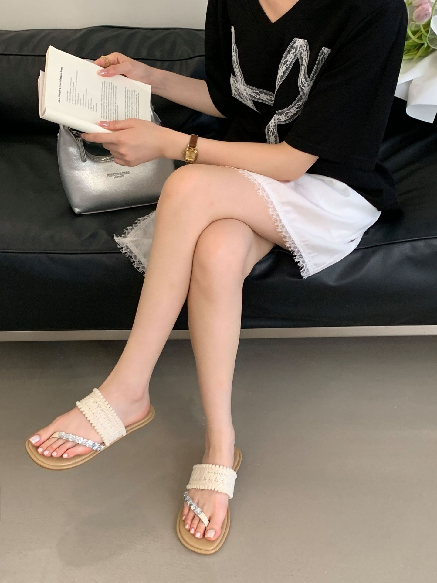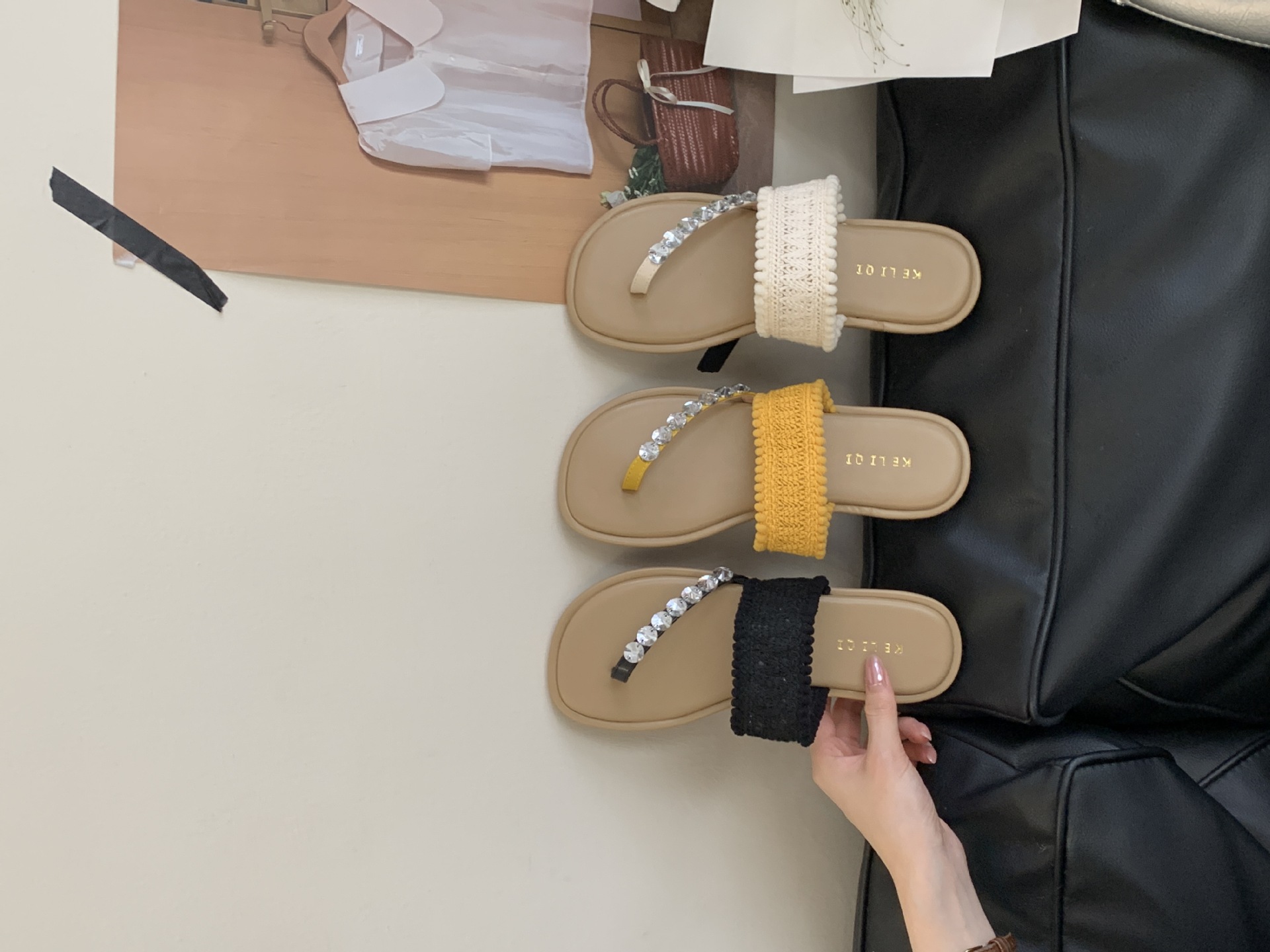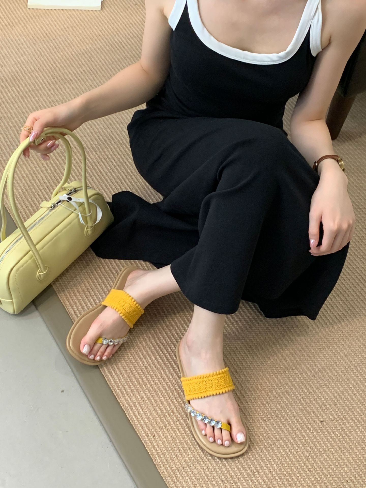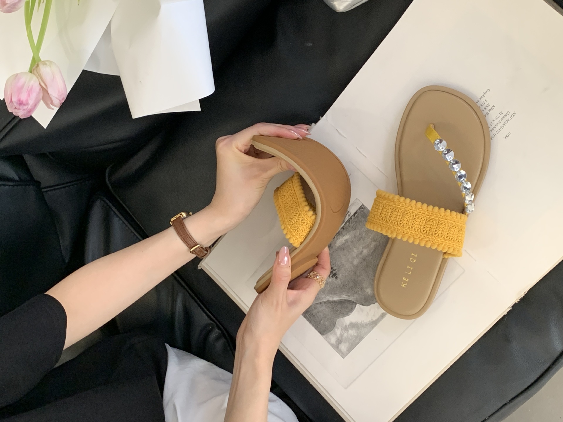 2025년 신상 여름 플랫 비치 슬리퍼, 라인스톤 슬리퍼, NS 스타일 패셔너블하고 활용도가 높은 비치 샌들