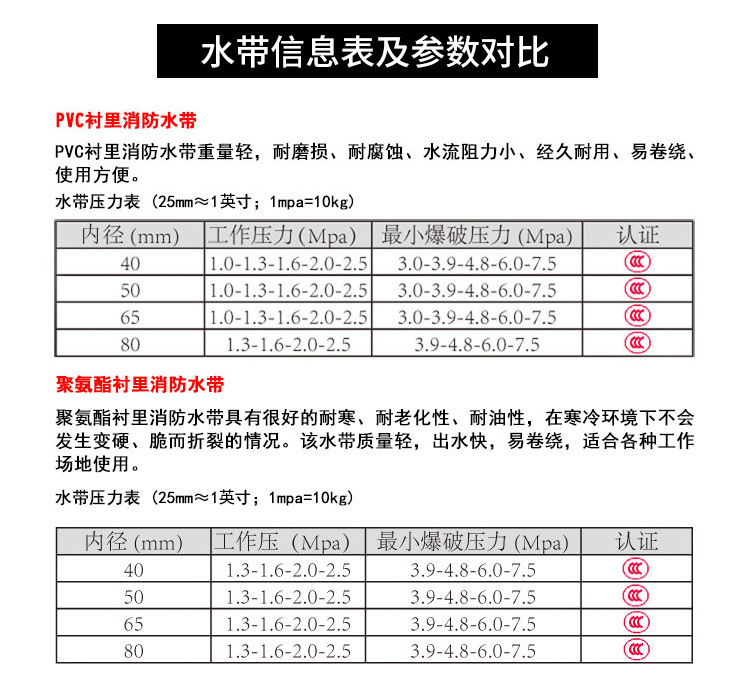 소방 호스 13/16/20/25 유형 폴리우레탄 두꺼운 2.5 인치 65 워터백 국가 표준 내마모성 파이프