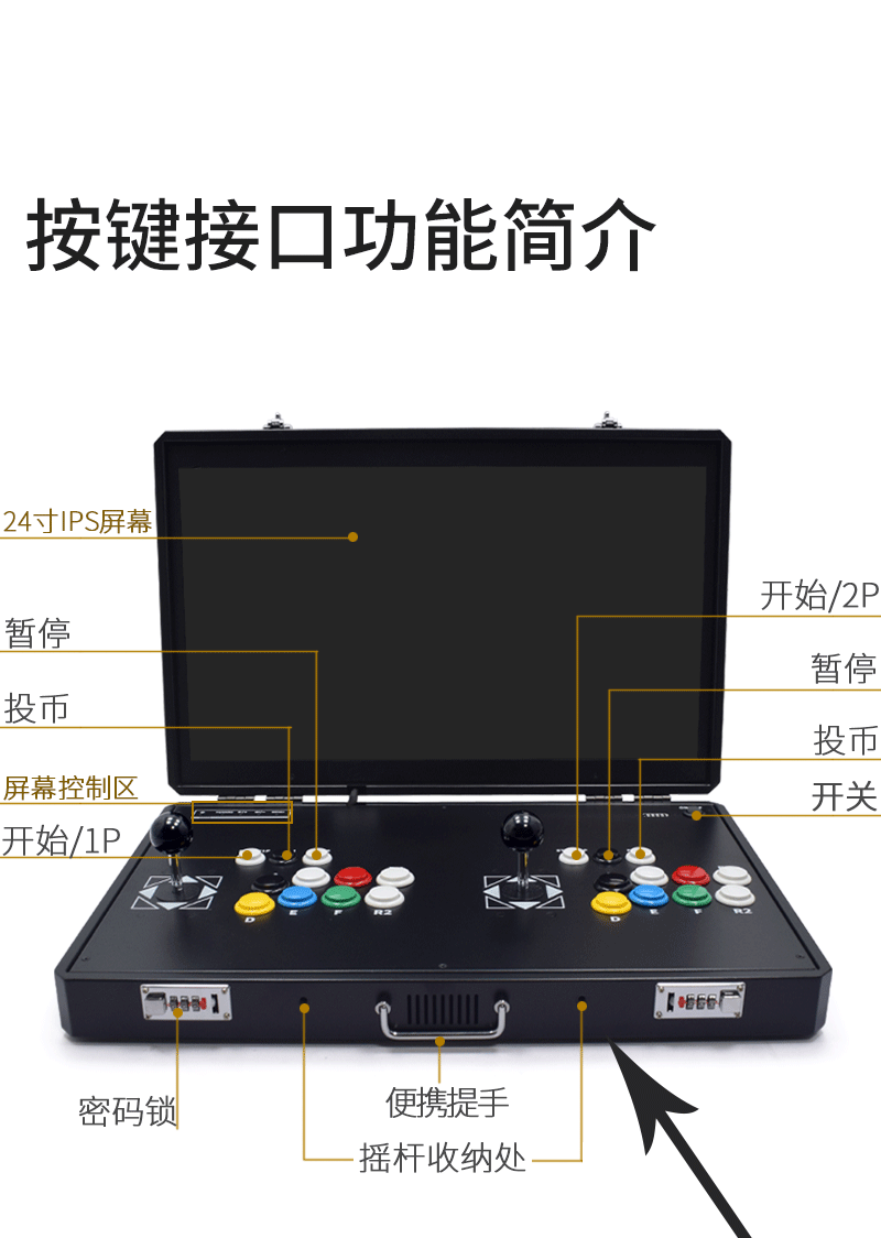 24inch 더블 로커 접이식 휴대용 판도라 아케이드 달빛 보물 상자 홈 게임 콘솔 파이팅 올인원스토어 가기