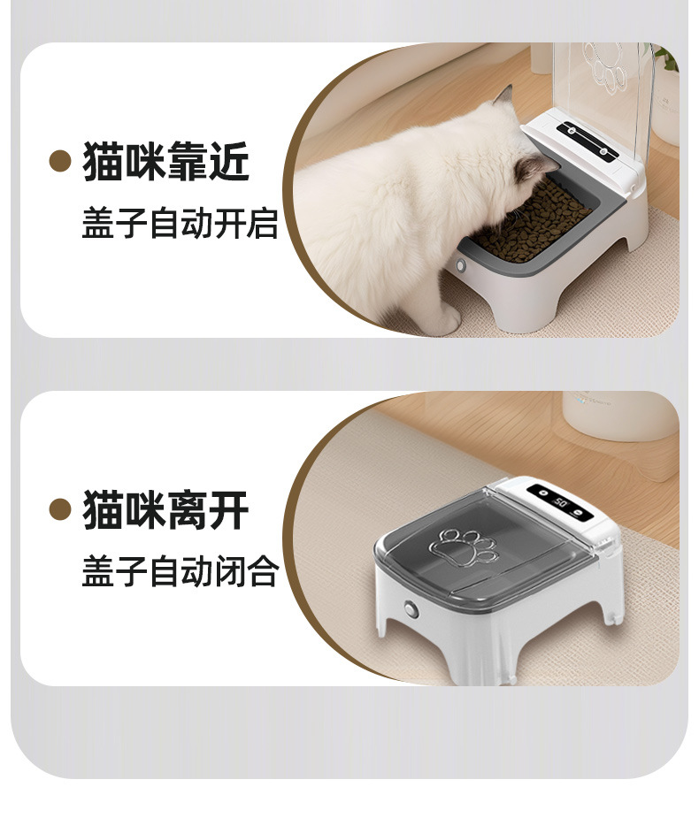 국경 간 새로운 자동 고양이 먹이 공급기 유도 개방형 뚜껑 타이밍 신선 유지 세라믹 그릇 애완 동물 지능형 개밥 먹이 공급기