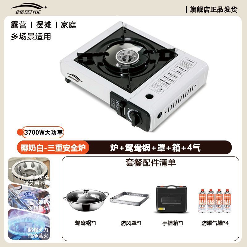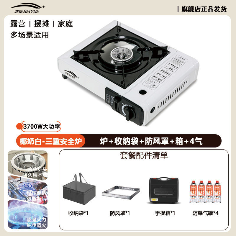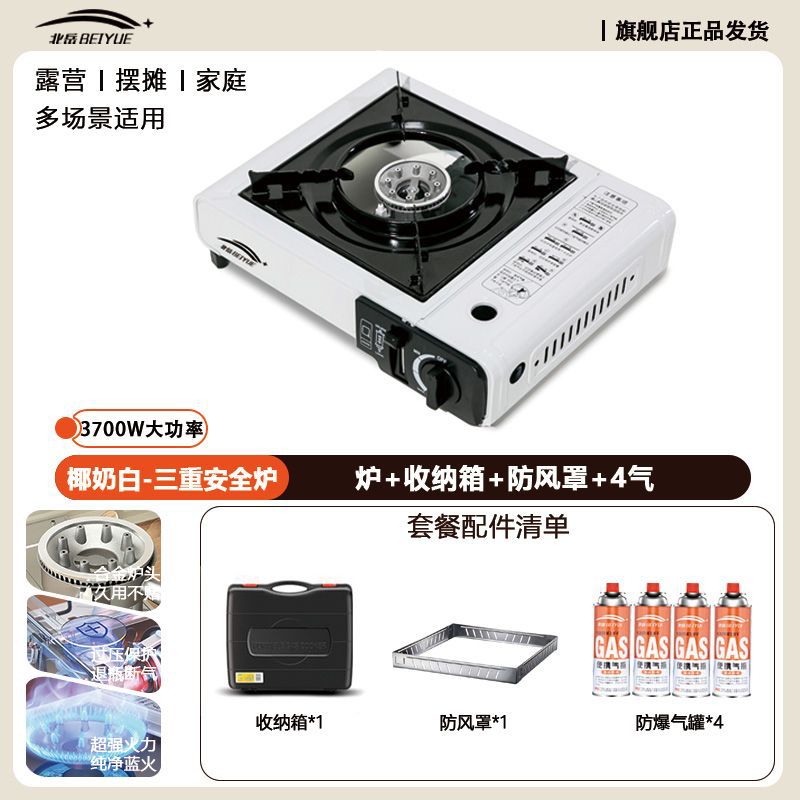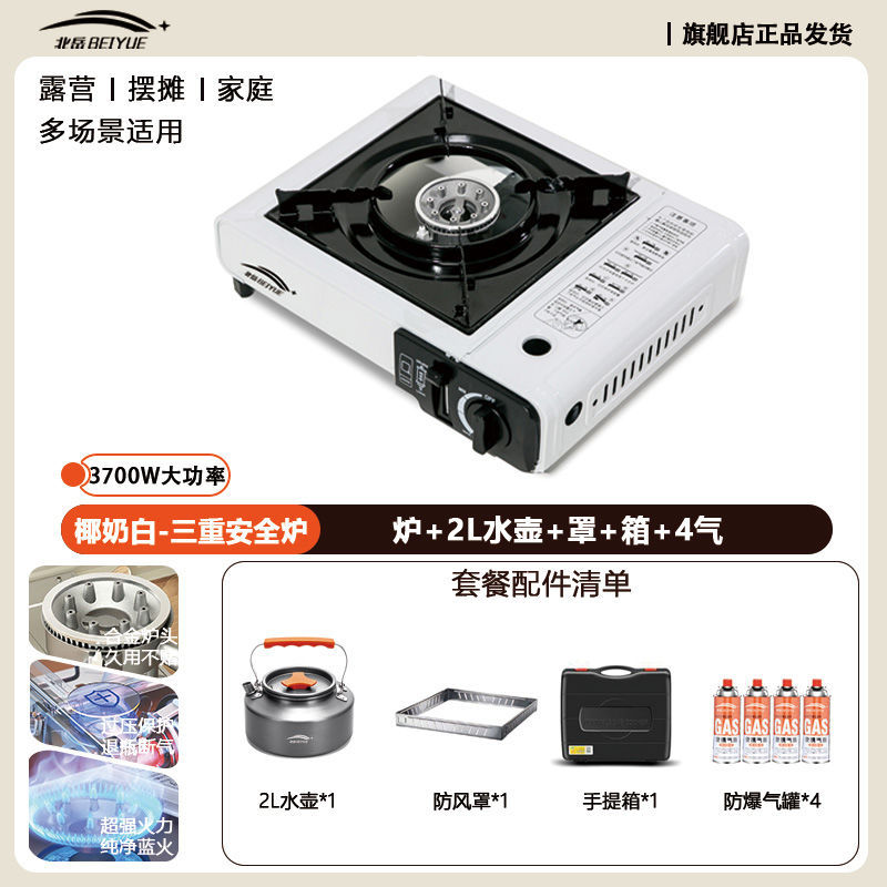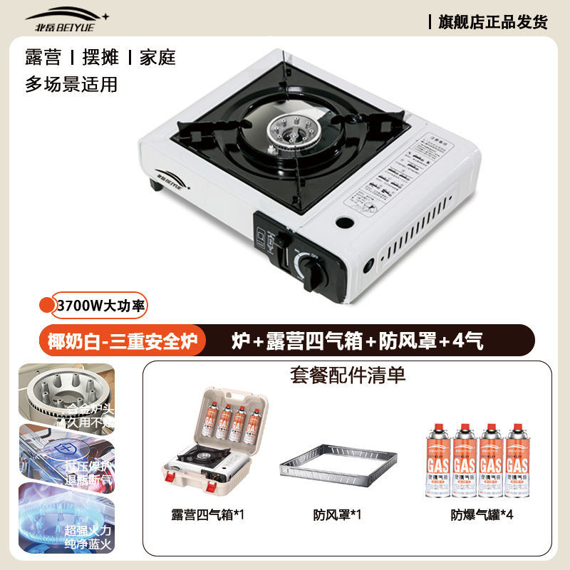 • 3700W 강력한 난로 + 방풍링 + 가스탱크 4개