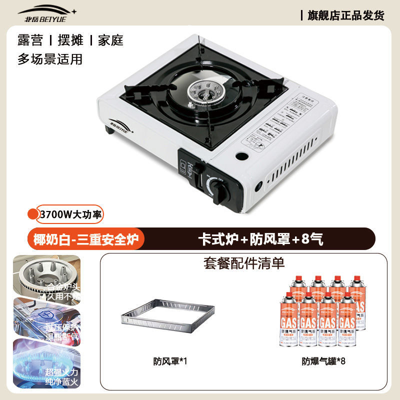 • 3700W 강력한 난로 + 방풍링 + 가스탱크 8개