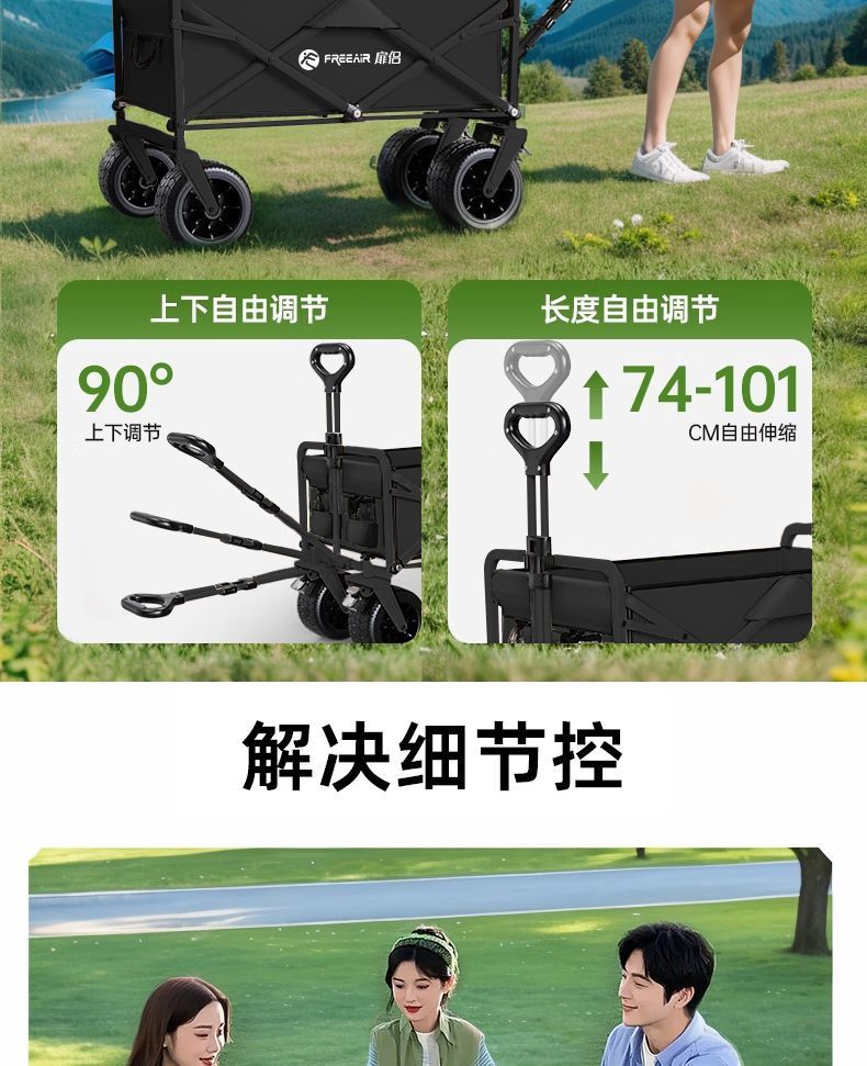 리클라이닝이 가능한 페이플 캠핑 트롤리, 경량 미니 버전, 새로운 야외 유물, 피크닉 접이식 트레일러