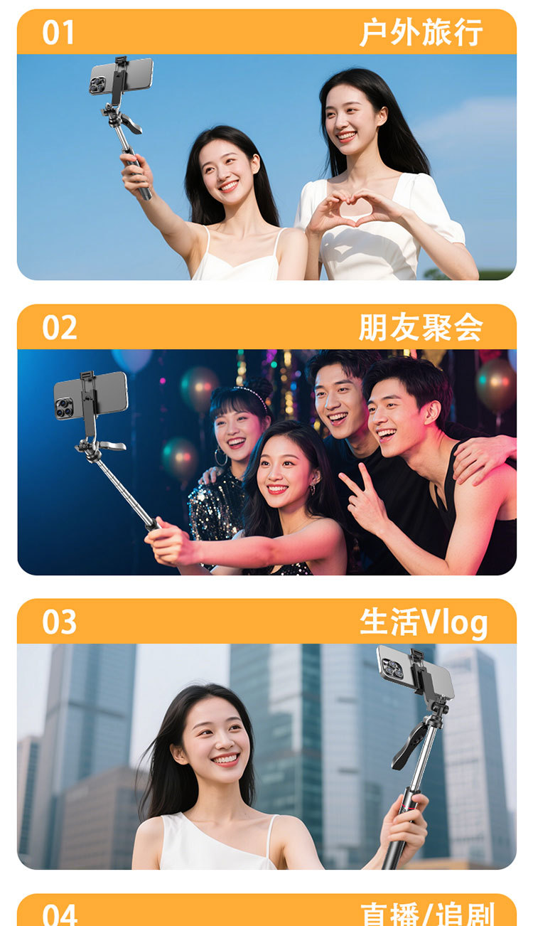 새로운 U17 휴대폰 셀카봉 1.7m Douyin 라이브 사진 텔레스코픽 360 ° 회전식 Bluetooth 원격 제어 홀더스토어 가기