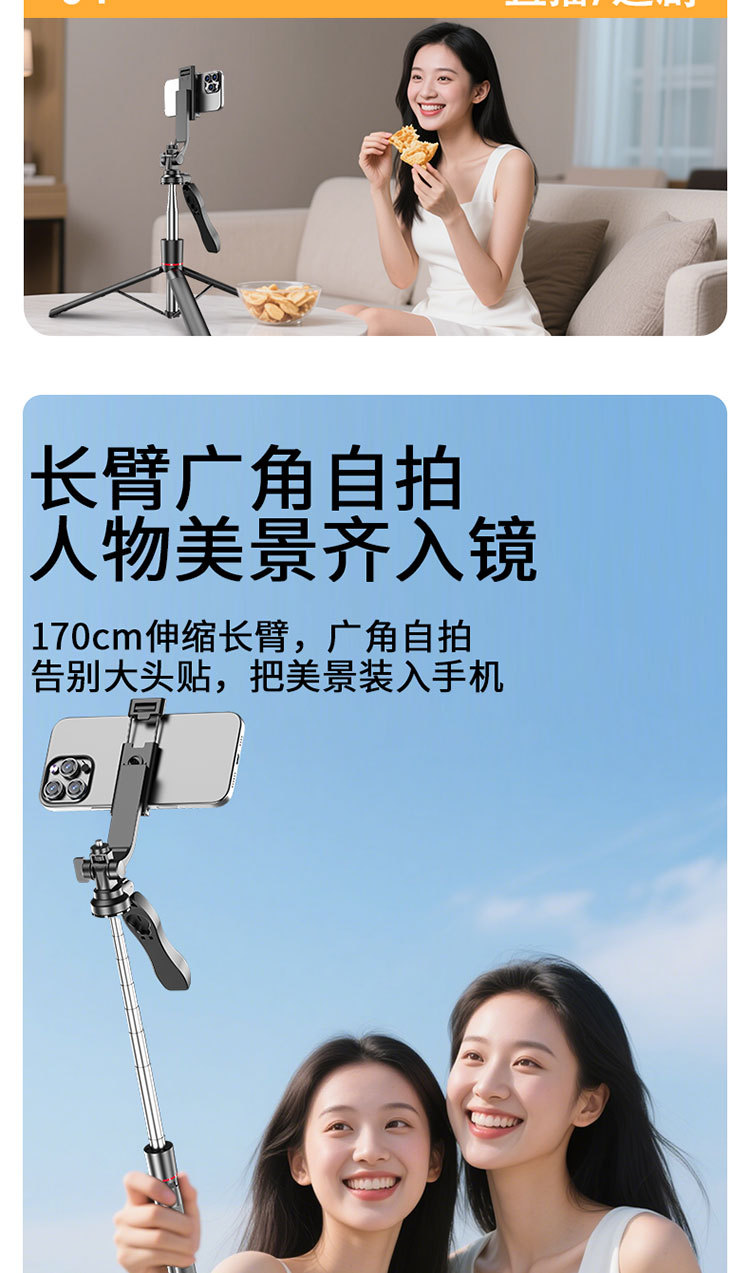 새로운 U17 휴대폰 셀카봉 1.7m Douyin 라이브 사진 텔레스코픽 360 ° 회전식 Bluetooth 원격 제어 홀더