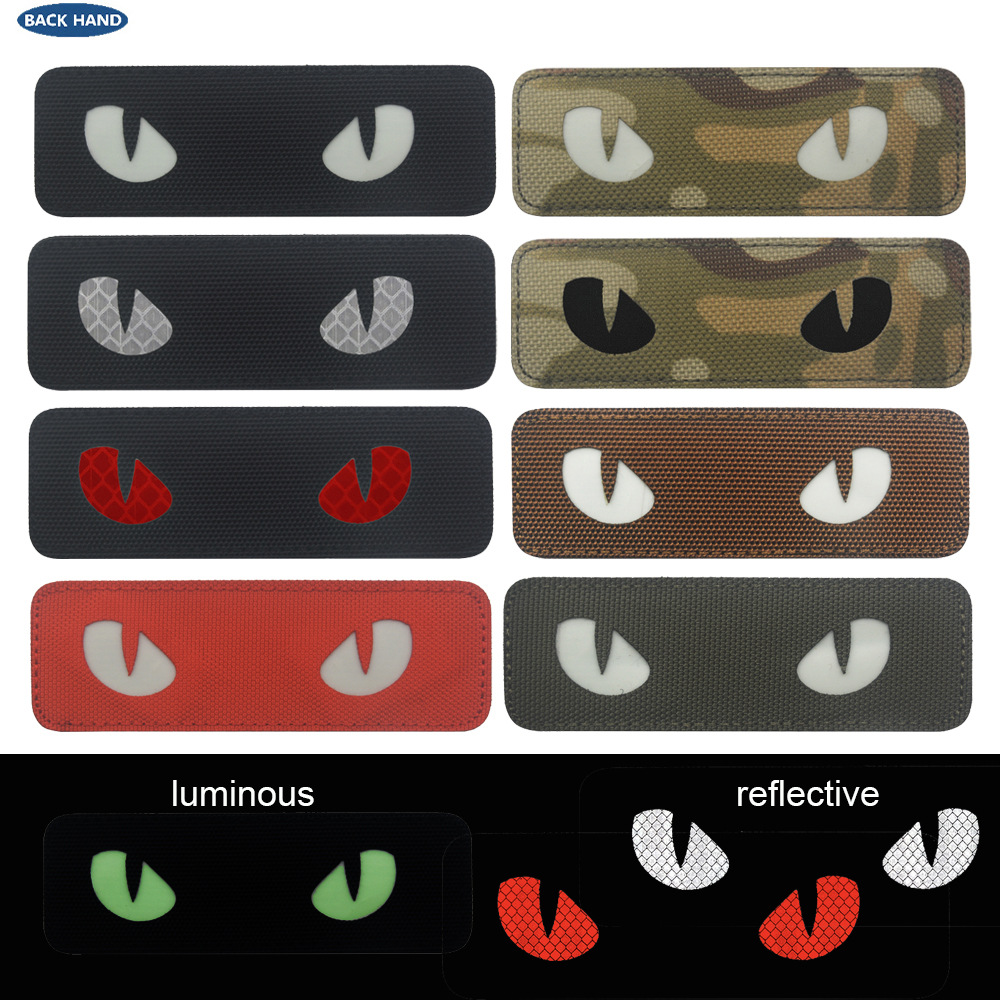 빛나는 창조적 인 고양이의 눈 악마의 눈 벨크로 사기 장 괴물 IR 식별 장 배낭 모자 스티커 장