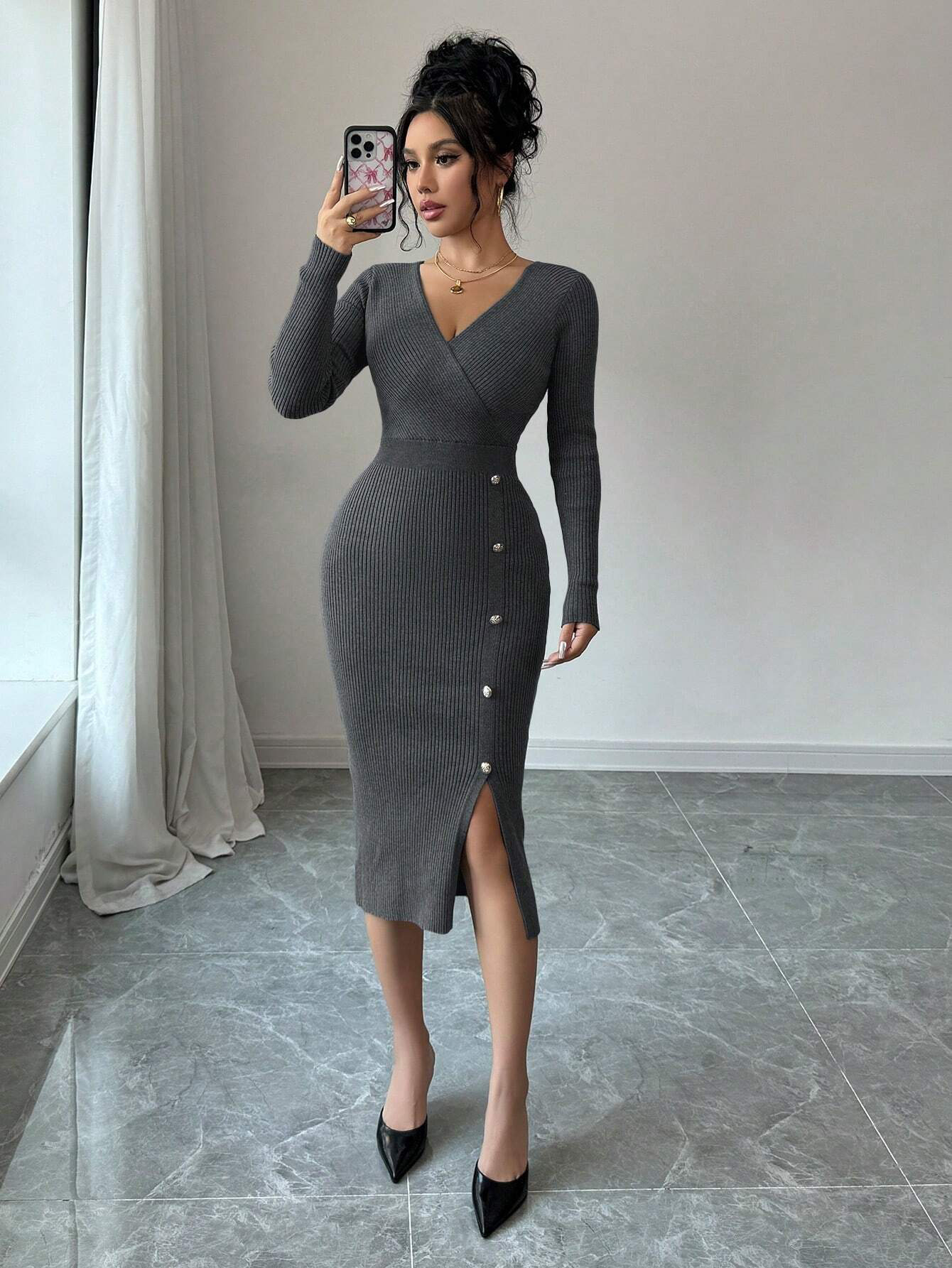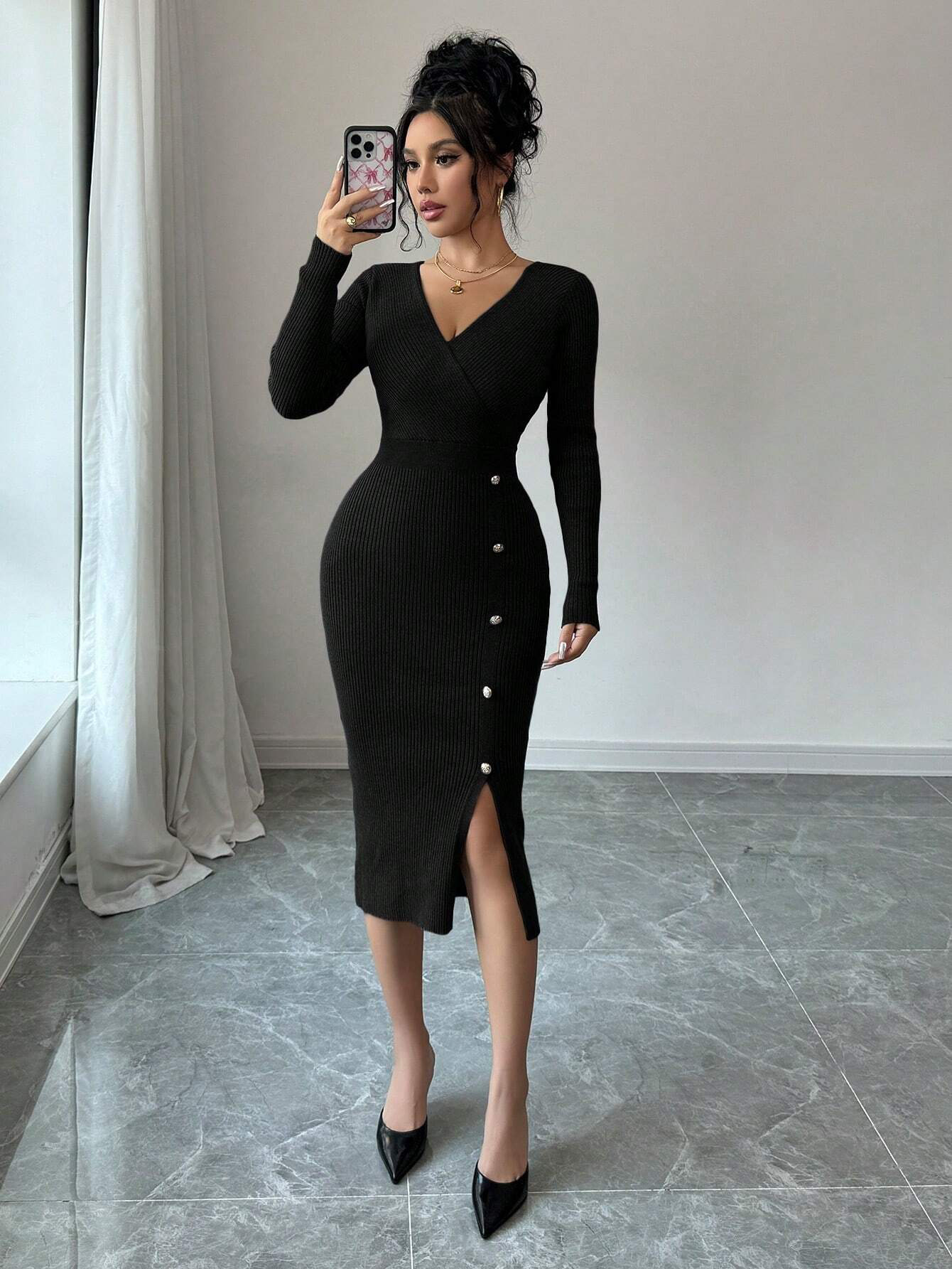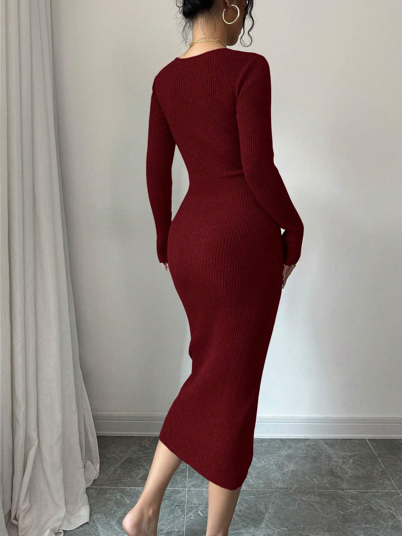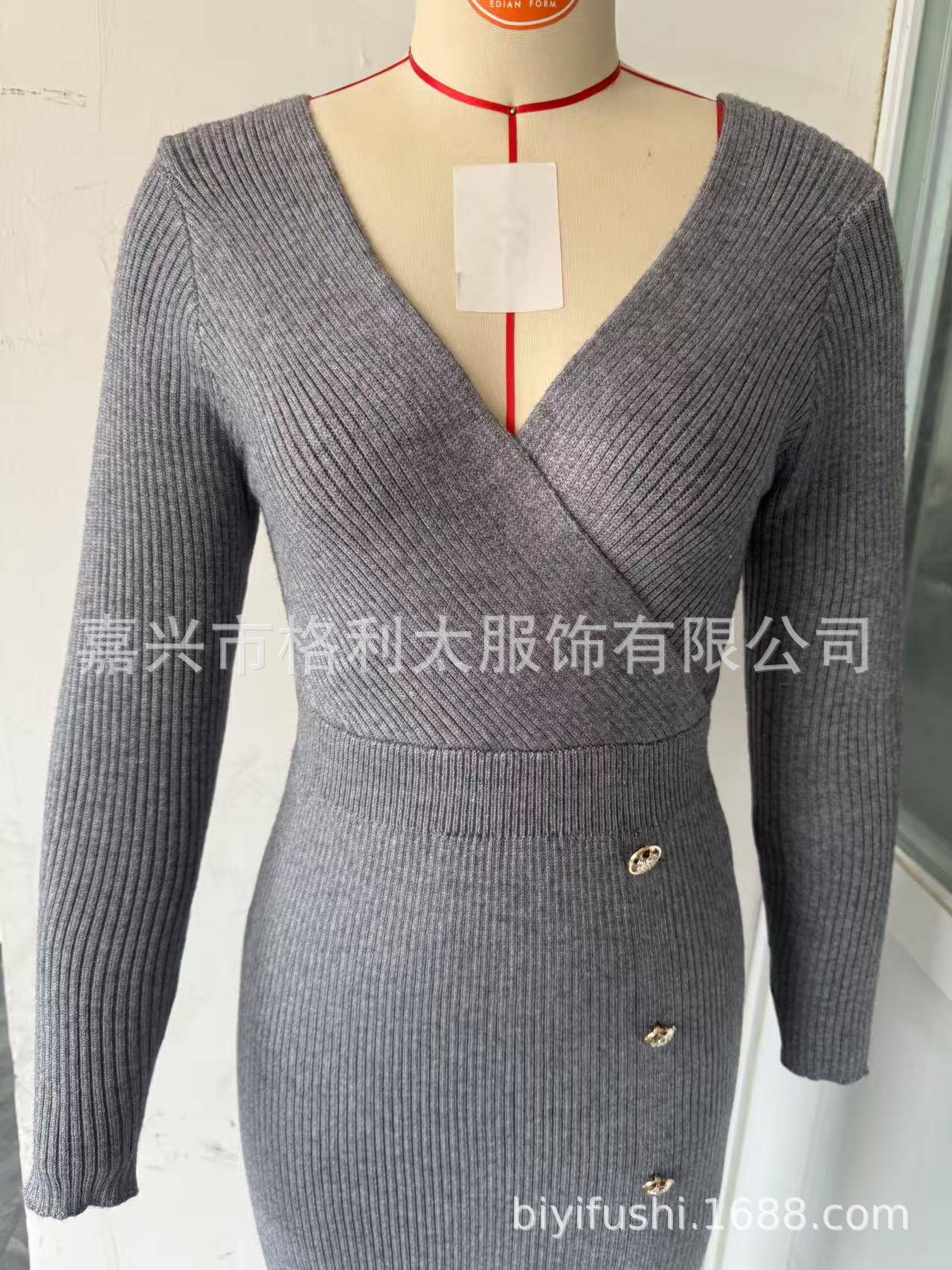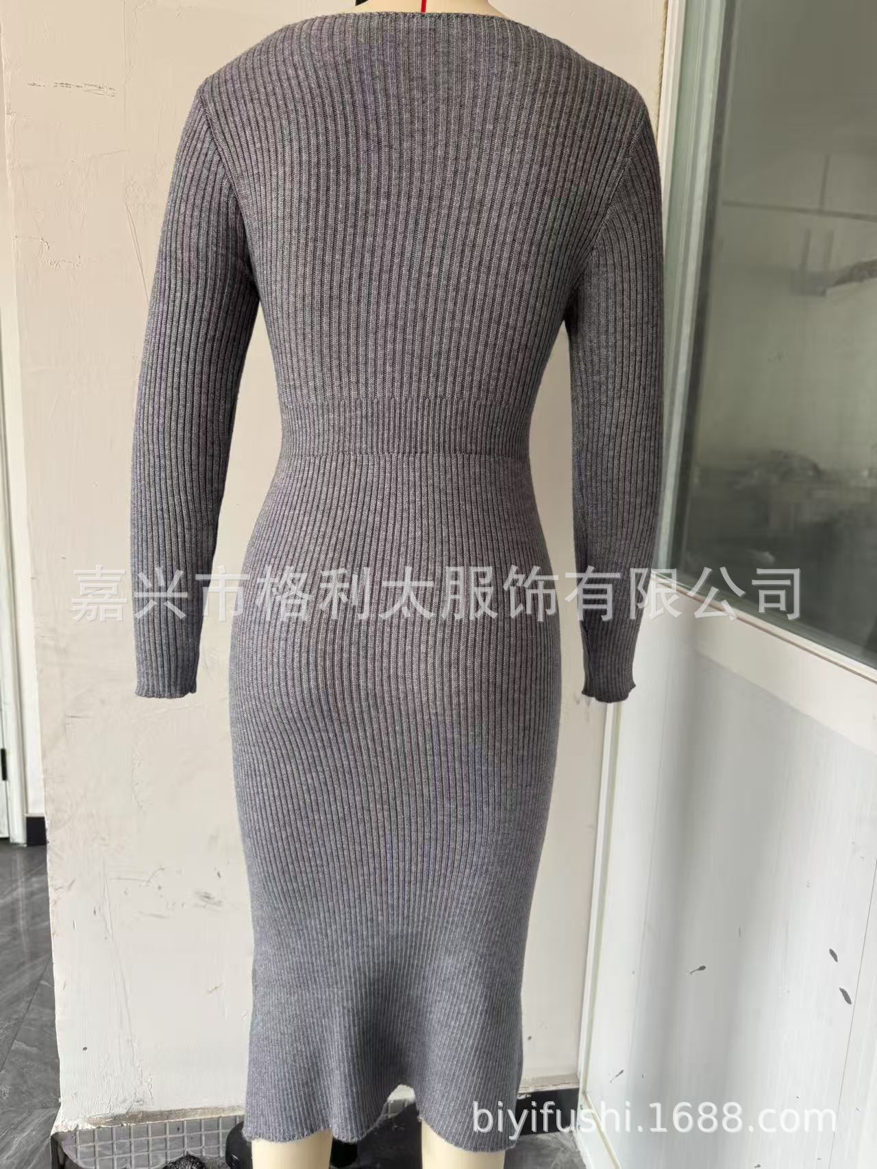 프랑스 원피스 2025 가을/겨울 타이트 허리 중간 길이의 엉덩이 스커트 베이스 타이트 니트 원피스스토어 가기