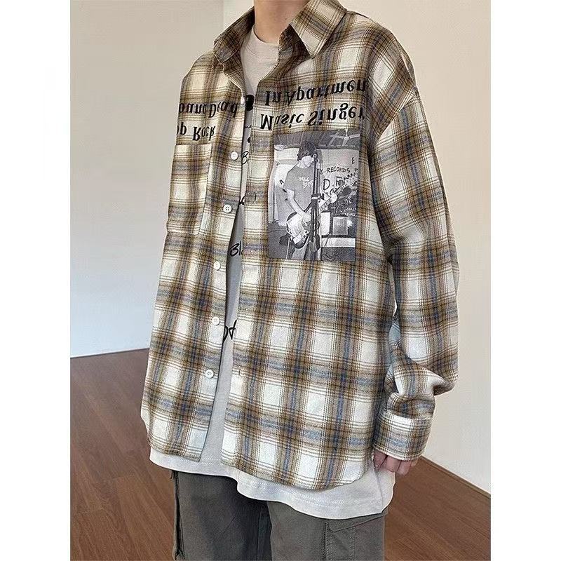 • YC61 그림 색상#코튼 체크 무늬 셔츠