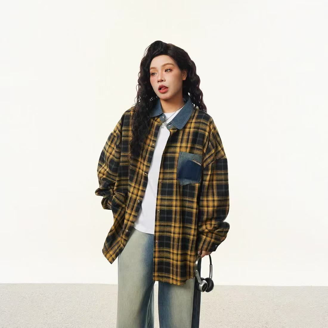 • YC59 태슬 옐로우 그리드#코튼 체크 무늬 셔츠